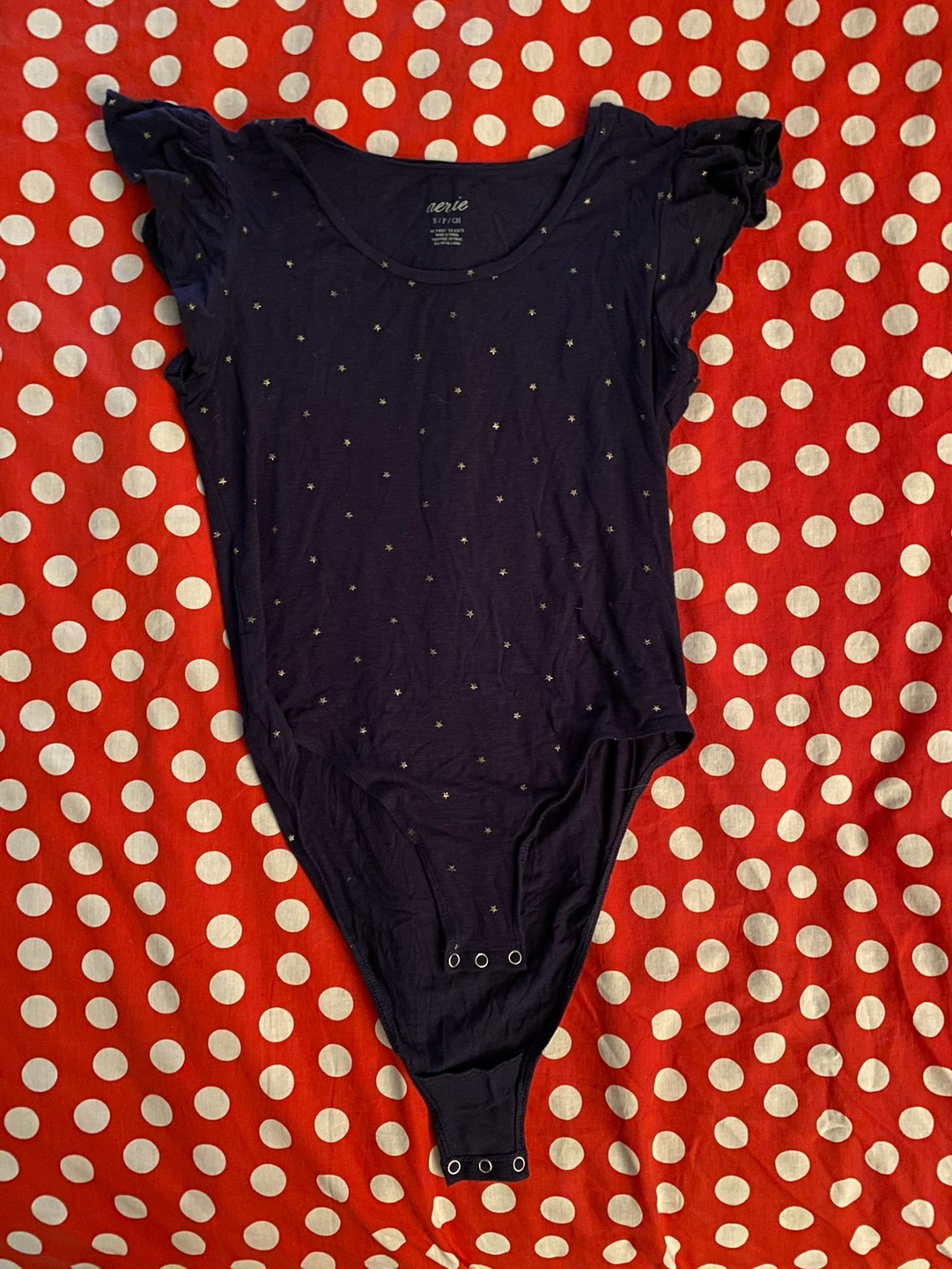 aerie navy bodysuit with metallic star print