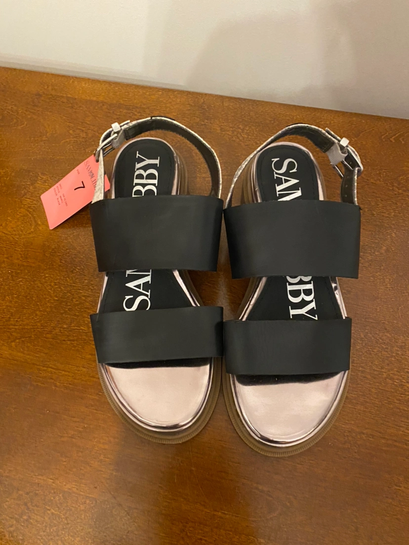 Selling a brand new pair of Sam and Libby Sandals. Purchased in the USA for my daughter to wear to an event. She never used them and has quickly grown out of them. Rubber sole making them nonslip, adjustable back strap with an elastic to give your ankle the perfect snug fit.