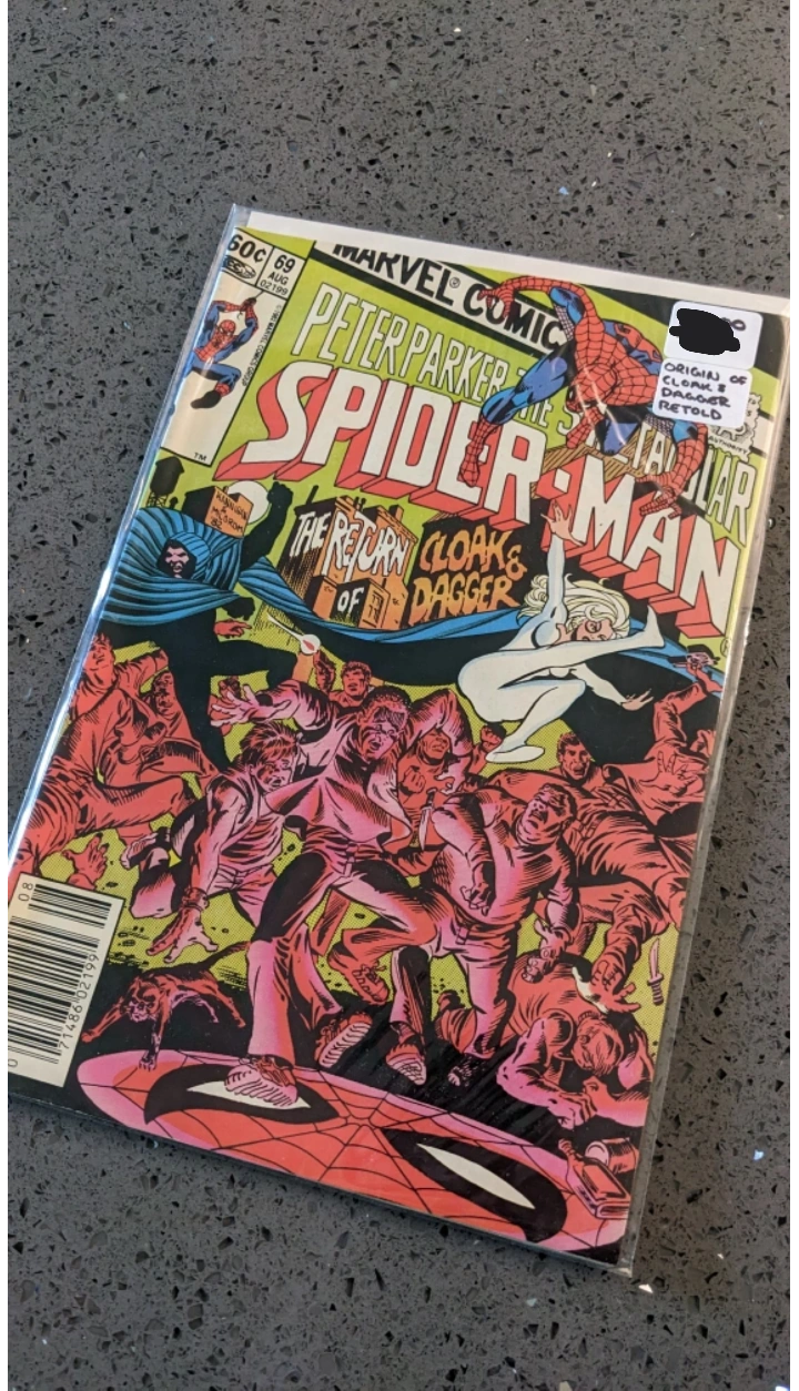 751Peter Parker Spectacular Spider-Man (1976) Issue #69 by Bill Mantlo (Feat. Cloak and Dagger) ""In Darkness Seldom Seen!" Part 1 of 2. Guest-starring Cloak and Dagger. Script by Bill Mantlo. Pencils by Ed Hannigan. Inks by Al Milgrom. Cover by Ed Hannigan and Al Milgrom. Cloak and Dagger are back! And still waging their violent war on drugs! But now their activities are being noticed by criminal heavyweights...specifically Silvermane and the Kingpin! Is the duo ready for the big time? When Cloak and Dagger move in for the kill on Silvermane, the web-slinger will have a critical choice to make! Cameo appearance by Captain Jean DeWolff. (Note: This issue features a full page ad for the first Hercules Limited Series. Art by Bob Layton.) 32 pages"