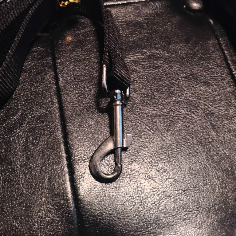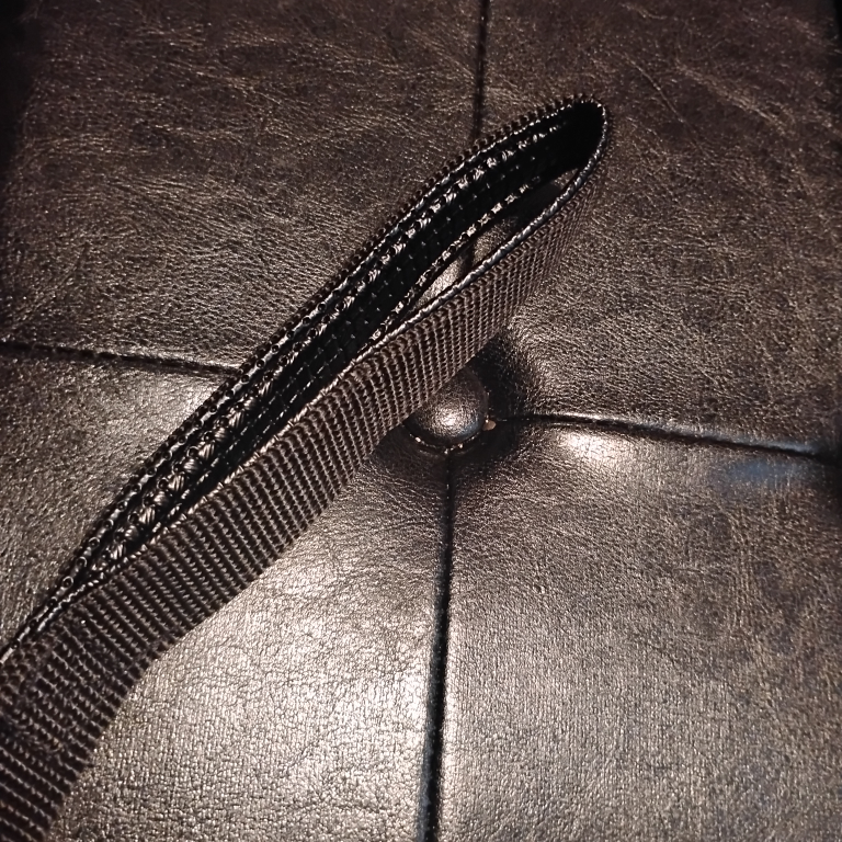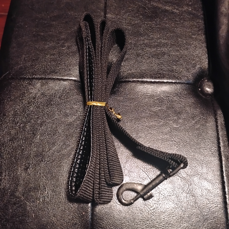72This leash is about 30 inches, and has never been used. This is a black dog leash with a metal clip.