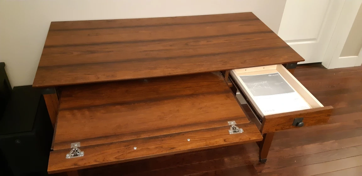 Great condition, small nick at one corner and replaced a few screws in the backplate to secure it better. Selling cause I built a new desk and don't have the space.