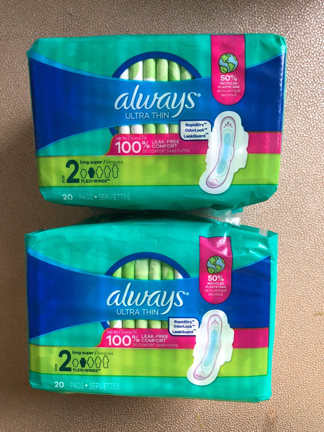 2 packs of Always Ultra Thin Pads size 2, each pack contains 20 pads.