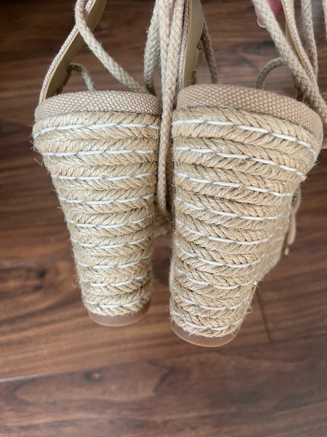 Tan espadrille wedges with lace up detailing. They are a size 7.5