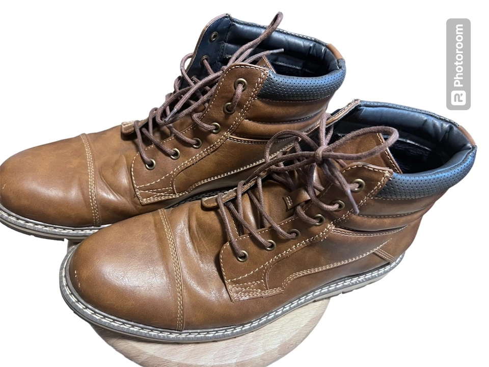These boots are caramel brown leather with a lace-up front. They have a rubber sole. In excellent condition. Fall/ Spring fashion