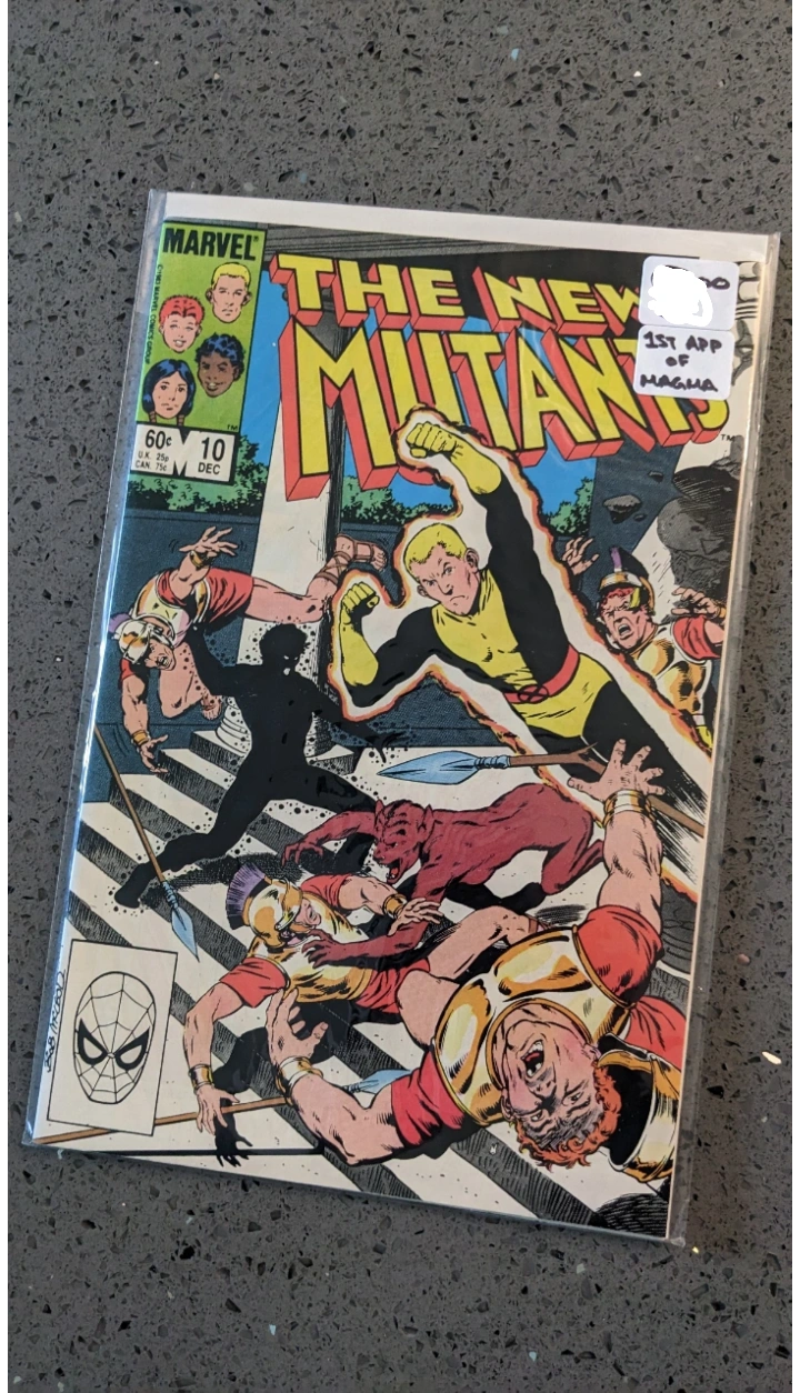 751New Mutants (1983) #10 by Chris Claremont (1st Appearance Amara as Magma) Marvel Comics Comic Book "Direct Edition. Regular series begins (first appearance is in Marvel Graphic Novel 4). Cover art by Bob McLeod. Initiation!, script by Chris Claremont, pencils by Bob McLeod, inks by Mike Gustovich; The New Mutants get acclimated to their new home, new talents, new friends, and new teachers, unaware that they are being watched; Moira learns that Professor X has a son; and Psyche is attacked in the Danger Room by an unknown assailant; Origin of Karma. Second appearance of the New Mutants (after Marvel Graphic Novel #4)"