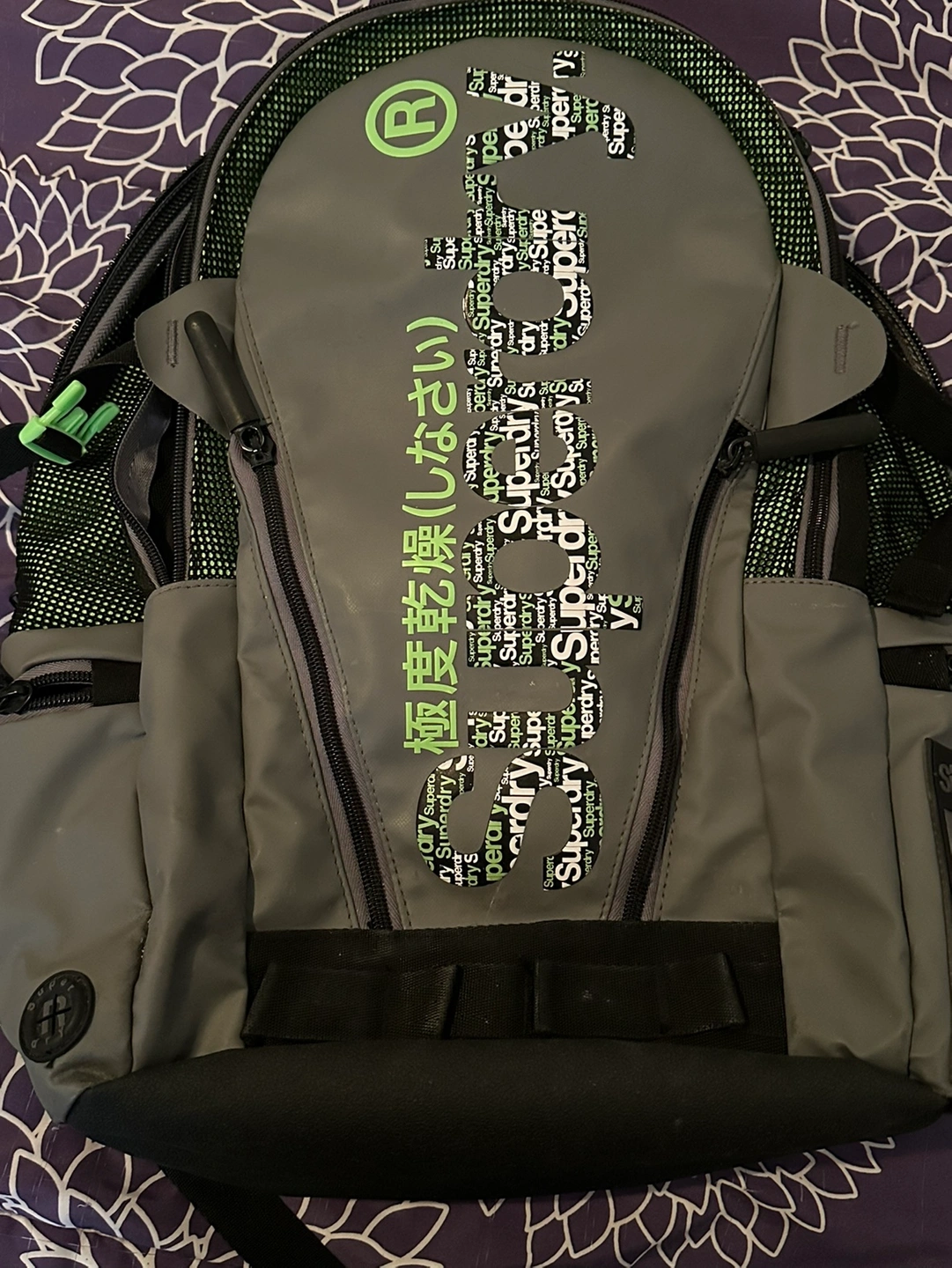 Superdry backpack In very good condition all zippers work No holes or tears in material Spacious interior Very clean, smoke free home