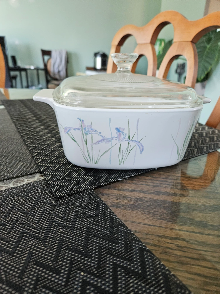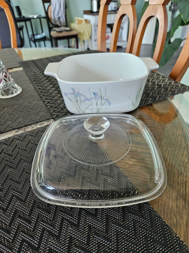 Vintage Pyrex 1.5 L baking dish with glass lid. Featuring a floral design. Gently used. Bought it but it doesn't match my other pieces so I am letting it go. Pick up only in Malton area of Mississauga. ( Airport Rd and Morningstar Dr)