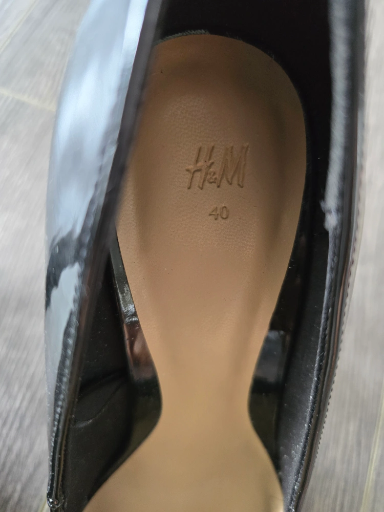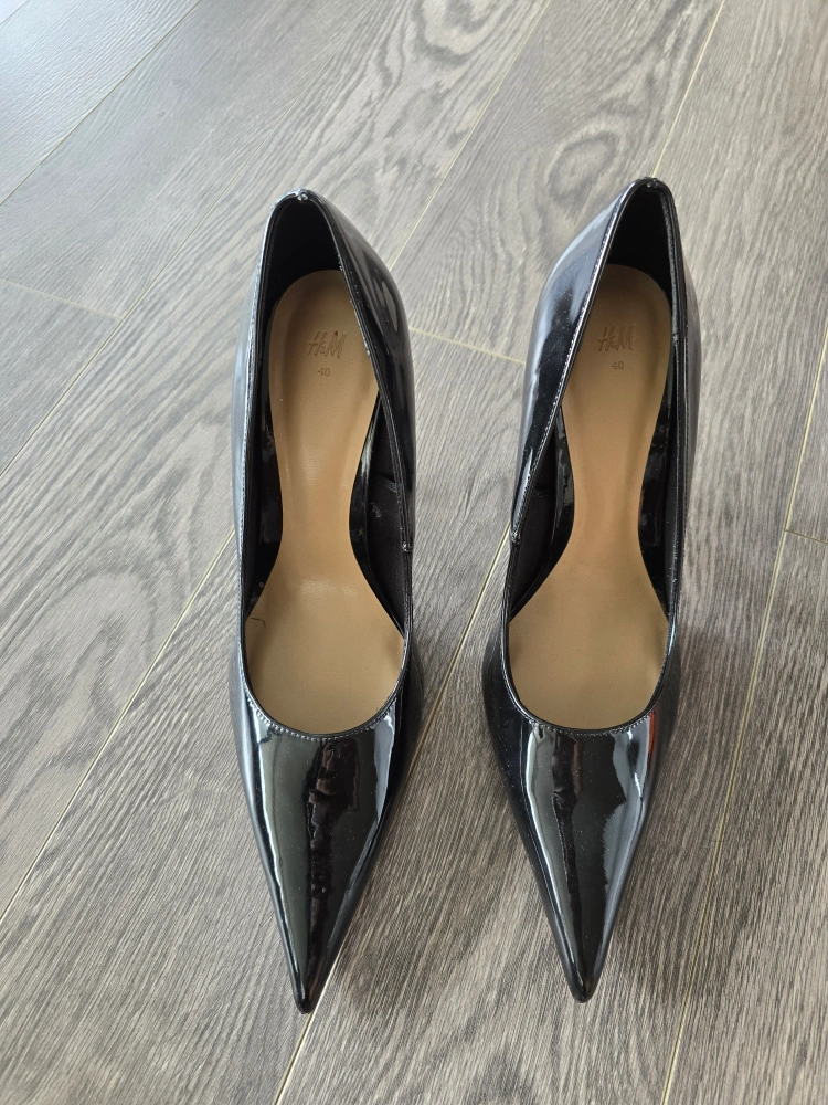 860Black patent leather pointed toe heels from H&M, size 40. They have a stiletto heel. Comfortable and brand new