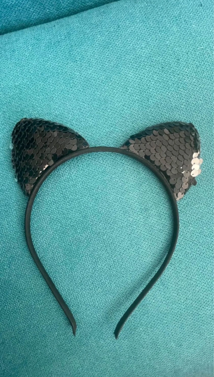 82A black headband with sequin cat ears.