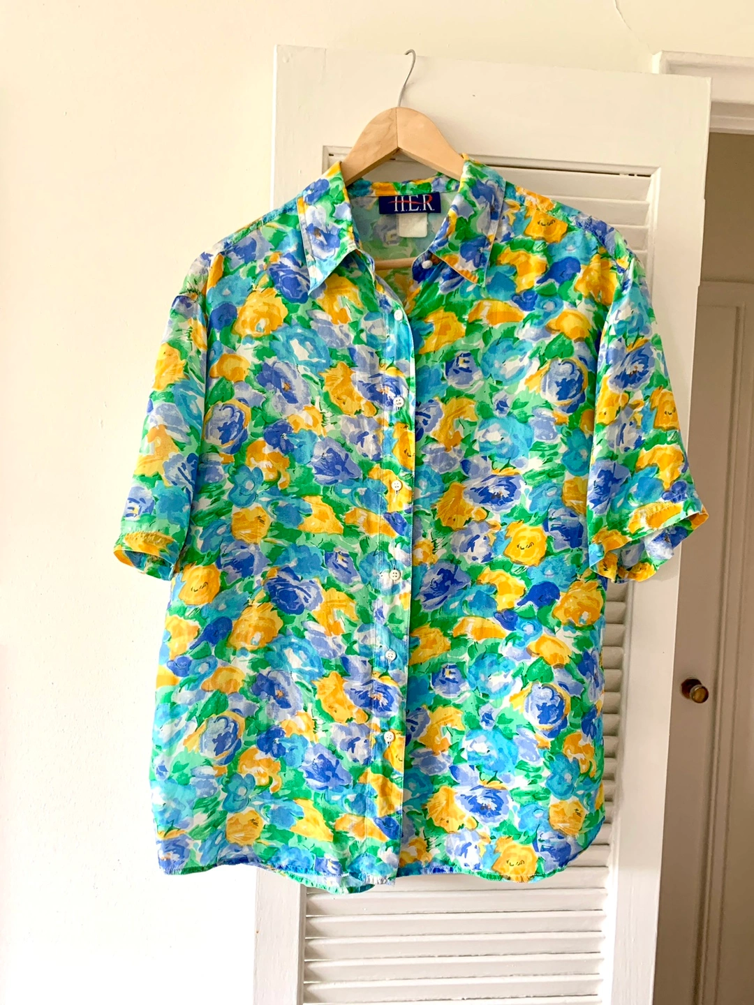 Vintage Silk HER Short Sleeve Shirt Blouse