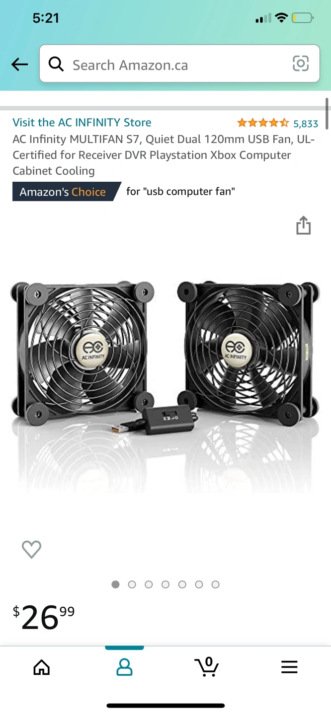 AC Infinity MULTIFAN S7, Quiet Dual 120mm USB Fan