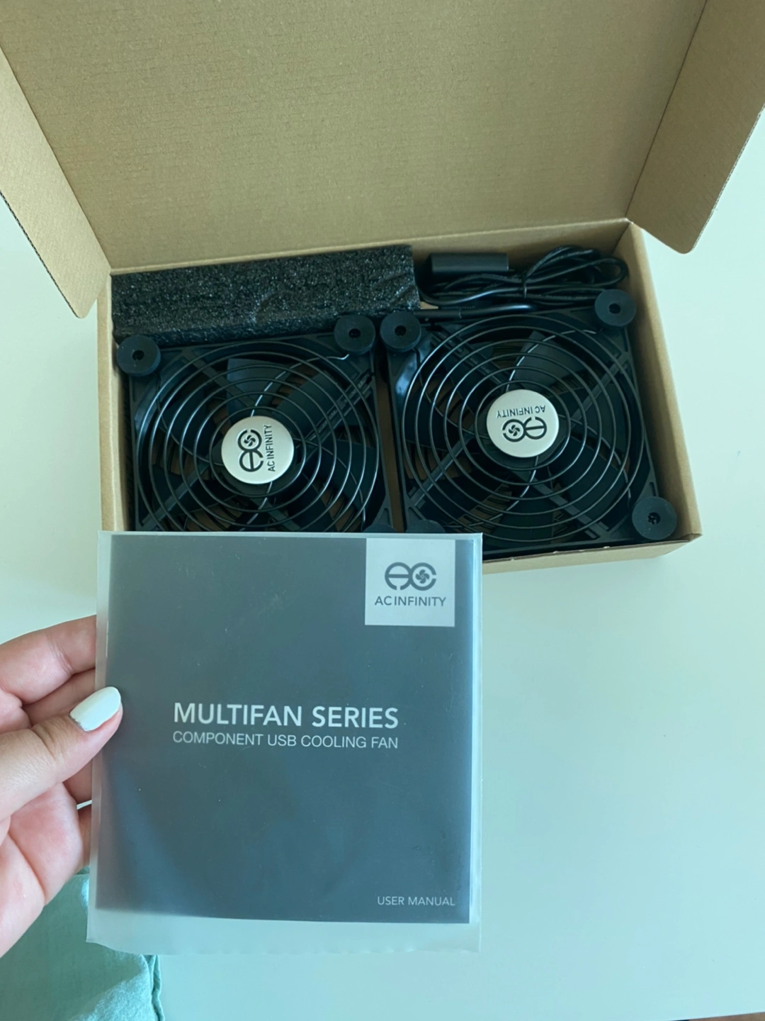 Dimensions: 4.7 x 4.7 x 1 in. per fan | Total Airflow: 104 CFM | Total Noise: 19 dBA|