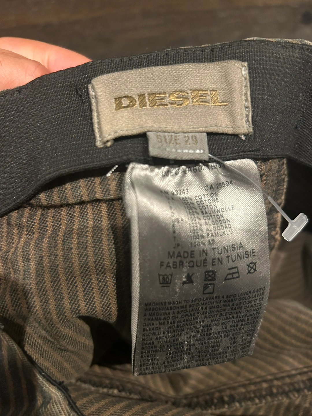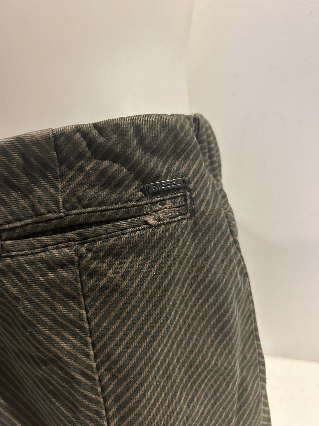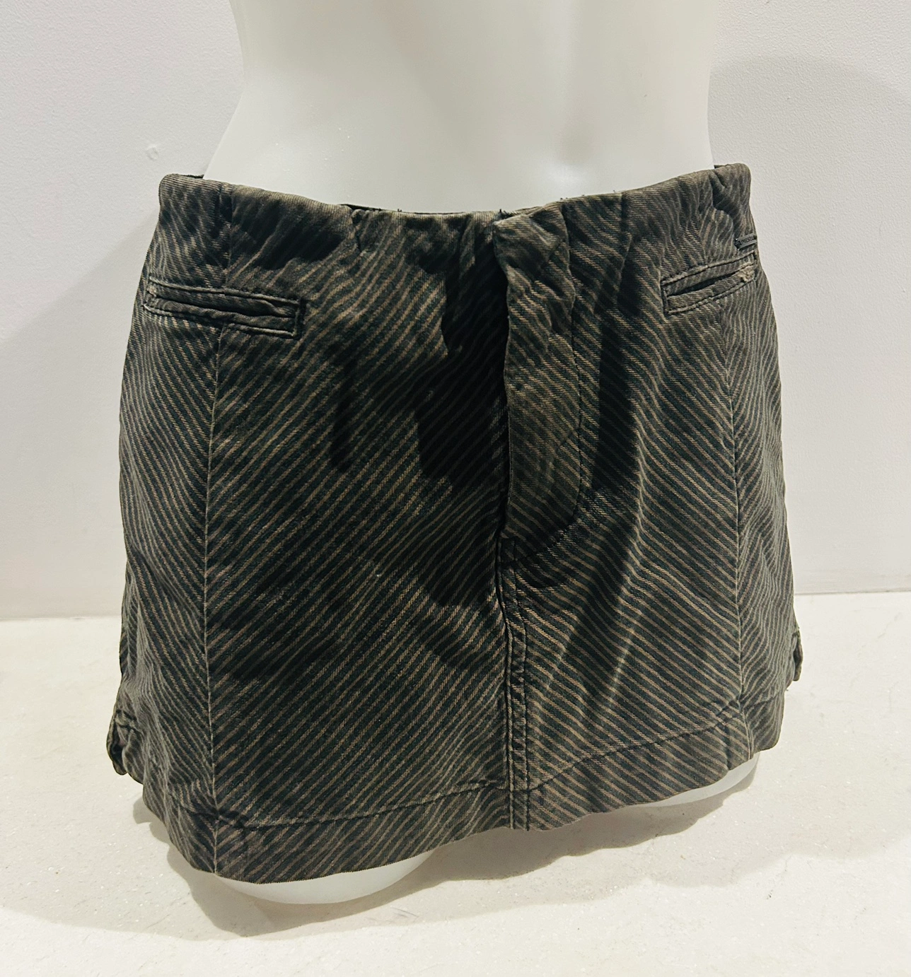 Super sexy Diesel cotton pinstripe mini skirt. Stretch waist. Size 29”. Zip and button closure. Great condition. Slit pockets.