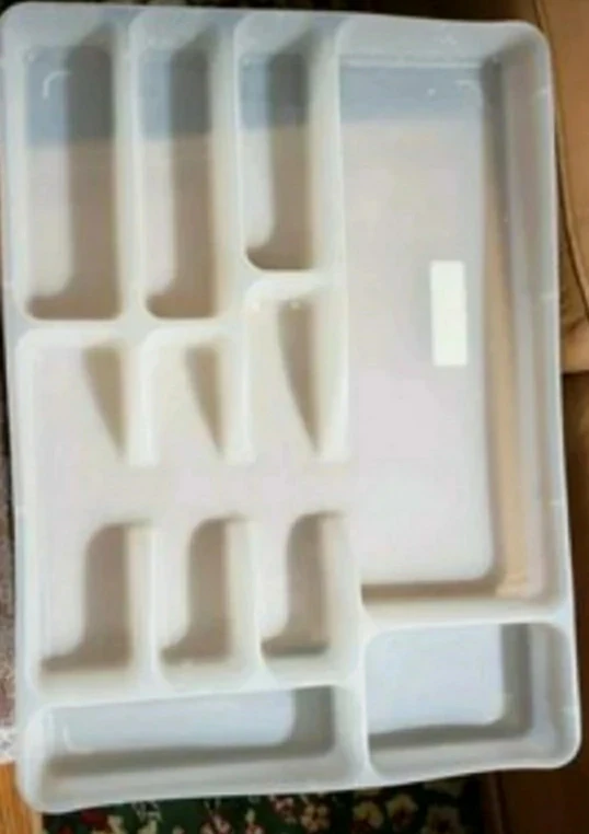 132A white plastic cutlery tray organizer with 9 compartments. Ikea Large Utensils drawer organizers 9 section 19.30x 14.30