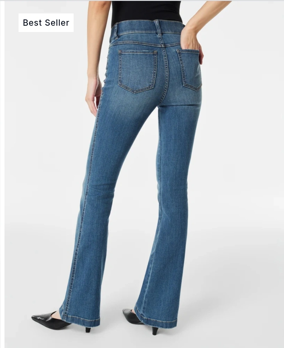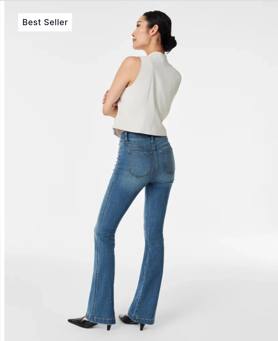 These 70s inspired flare jeans are the perfect wear everywhere with anything style. Designed with premium stretch denim, high-rise coverage and hidden core shaping technology, this jean puts a new twist on a retro silhouette.