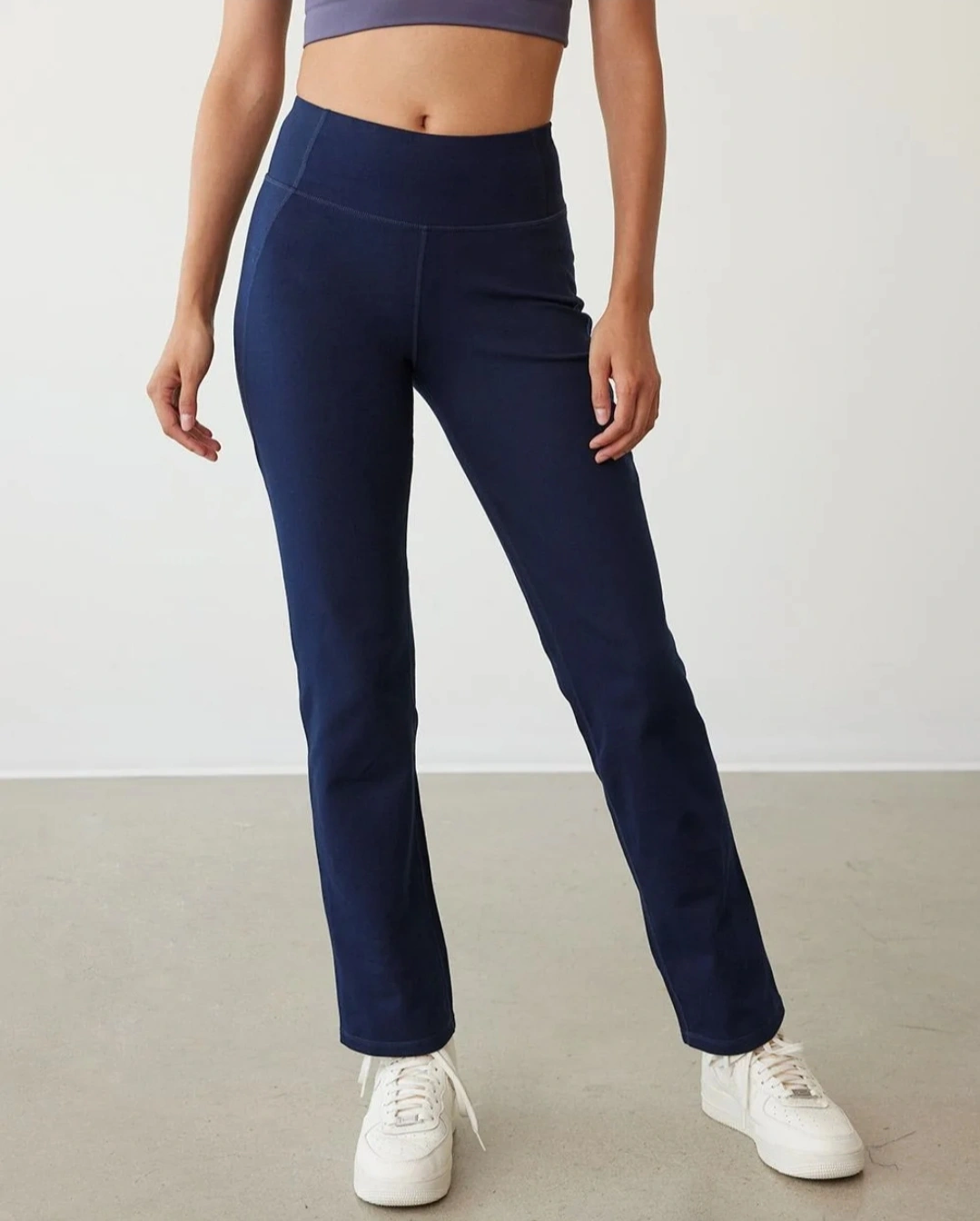 You will never want to take off these super comfortable pants featuring mesh panels and angular front seams creating a slimming effect. - Soft cotton blend - Fitted - Regular rise - Straight leg - Mesh support panels at waist and hips for slimming effect. - Angular front seams for slimming effect - Inseam: 31 in.
