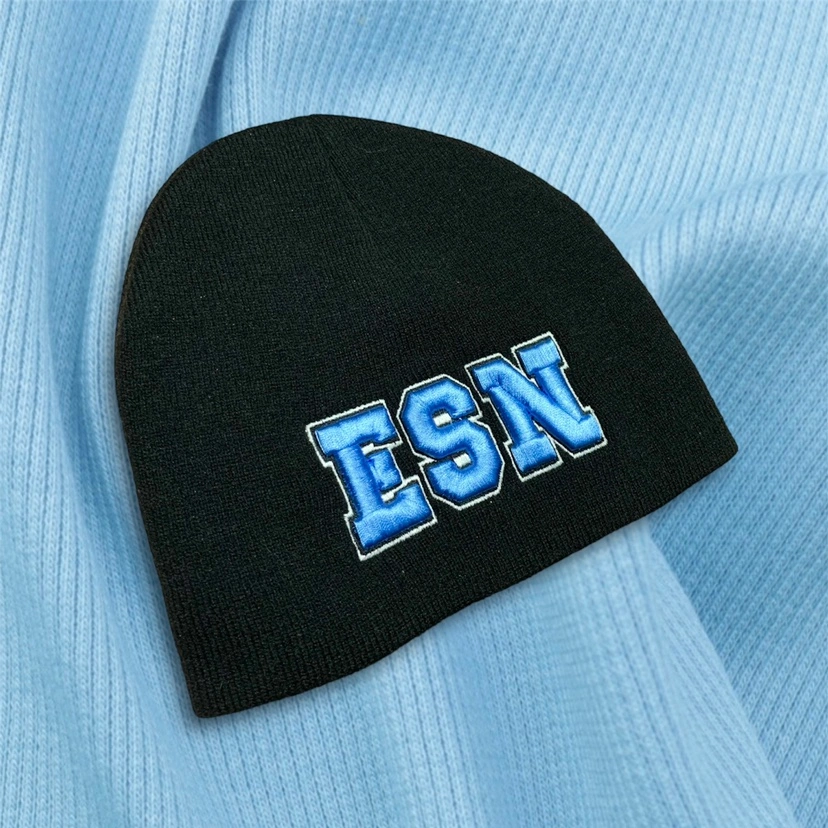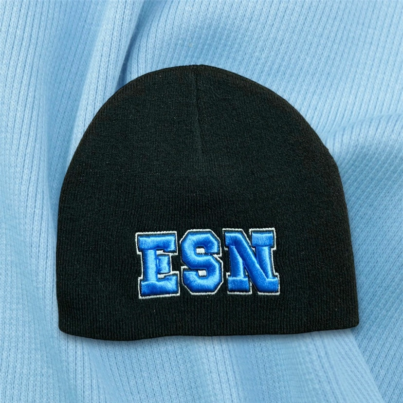 Black beanie with blue embroidered letters spelling "ESN" in New Condition