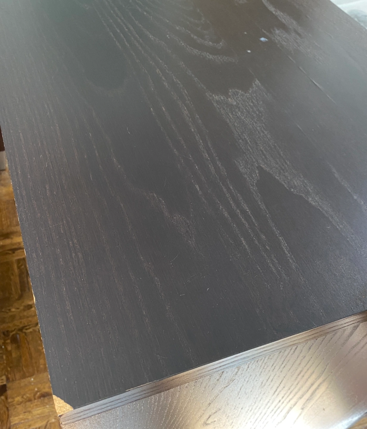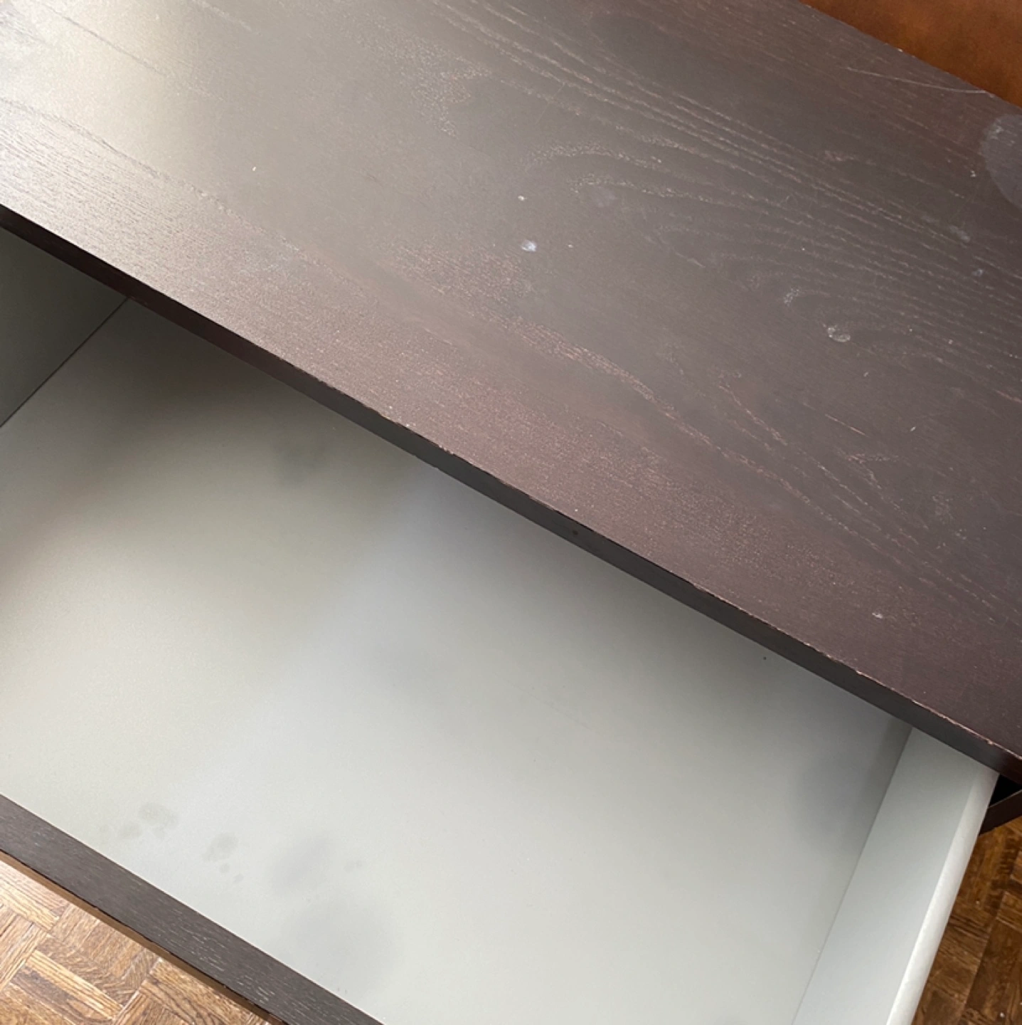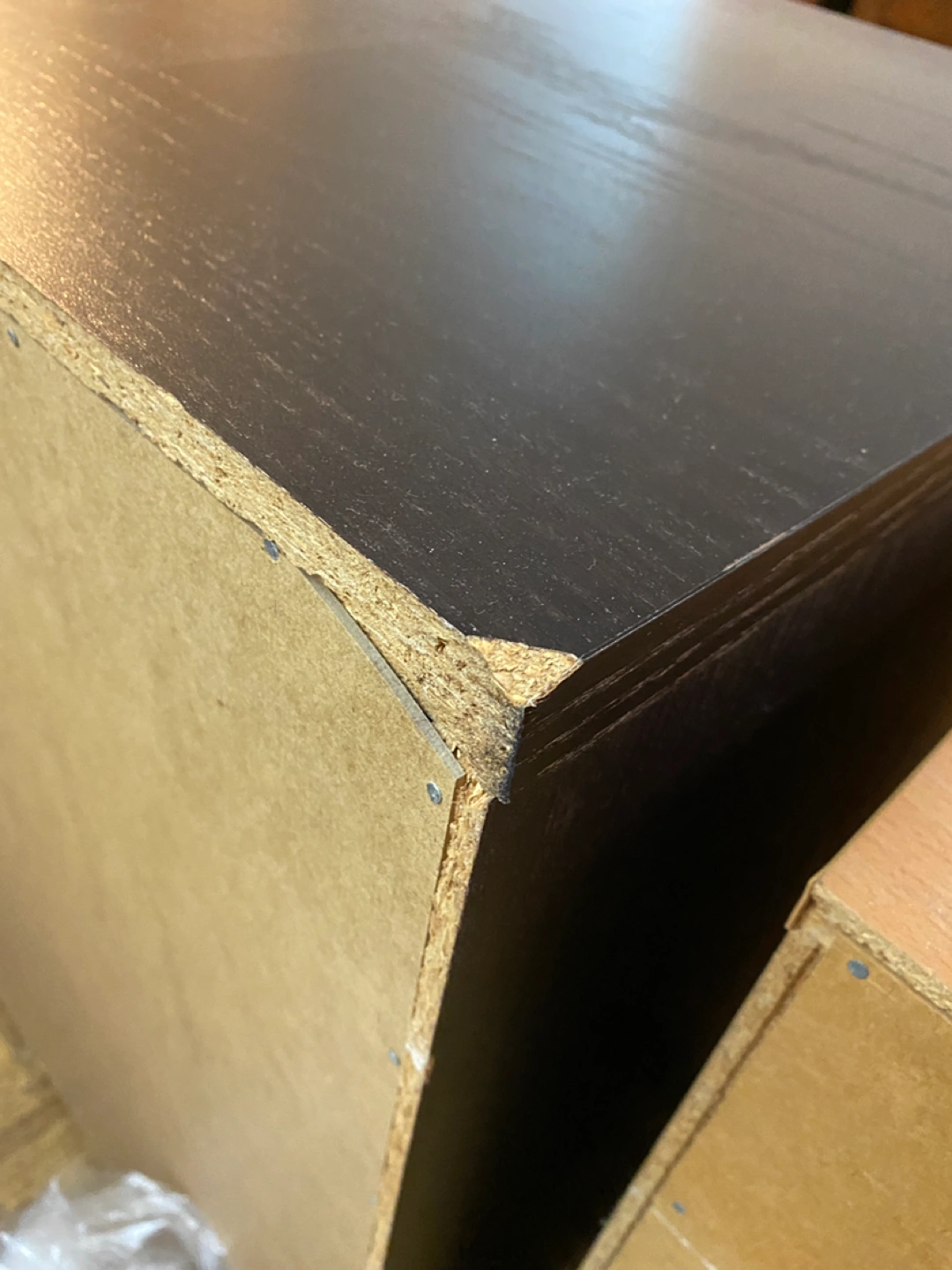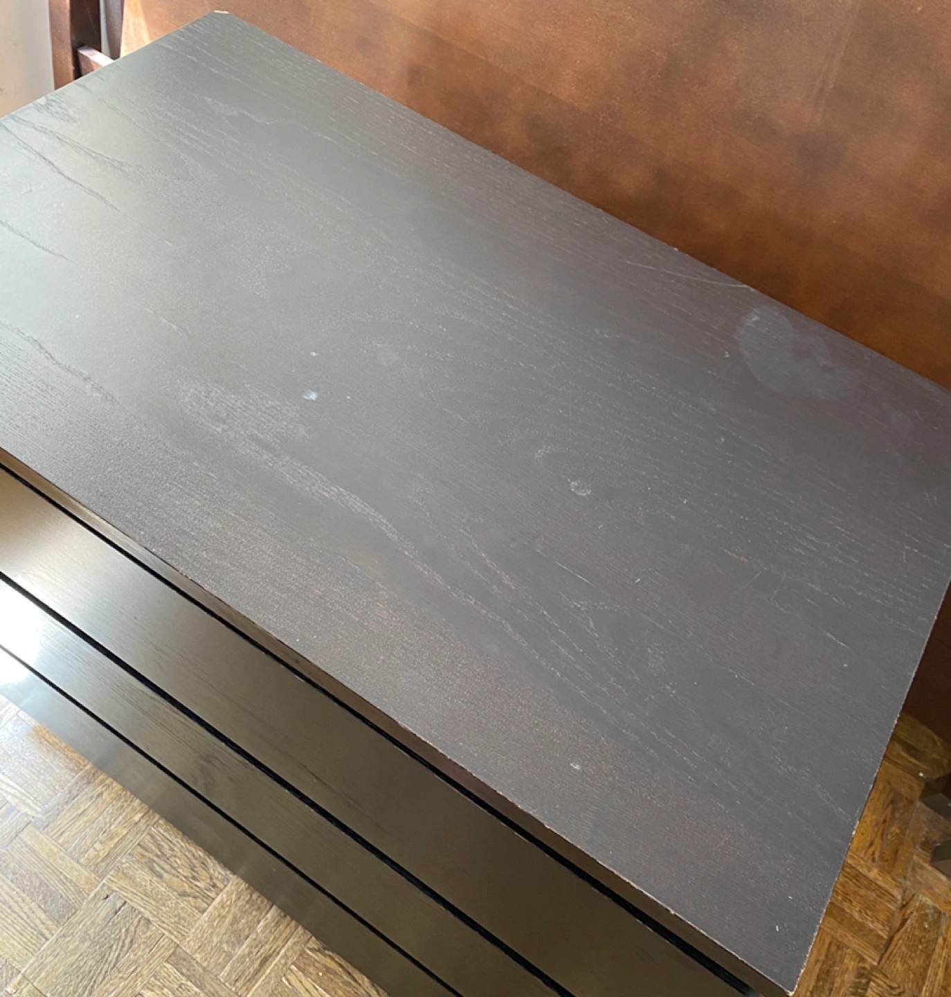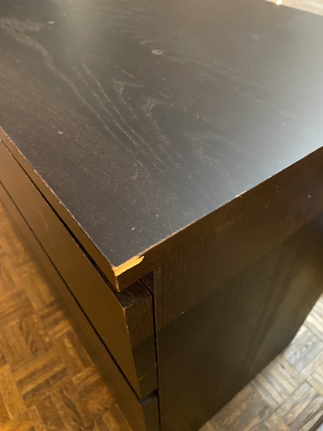 Has some stain on the top and first drawer. Has some chips as pics. All drawer are working well.