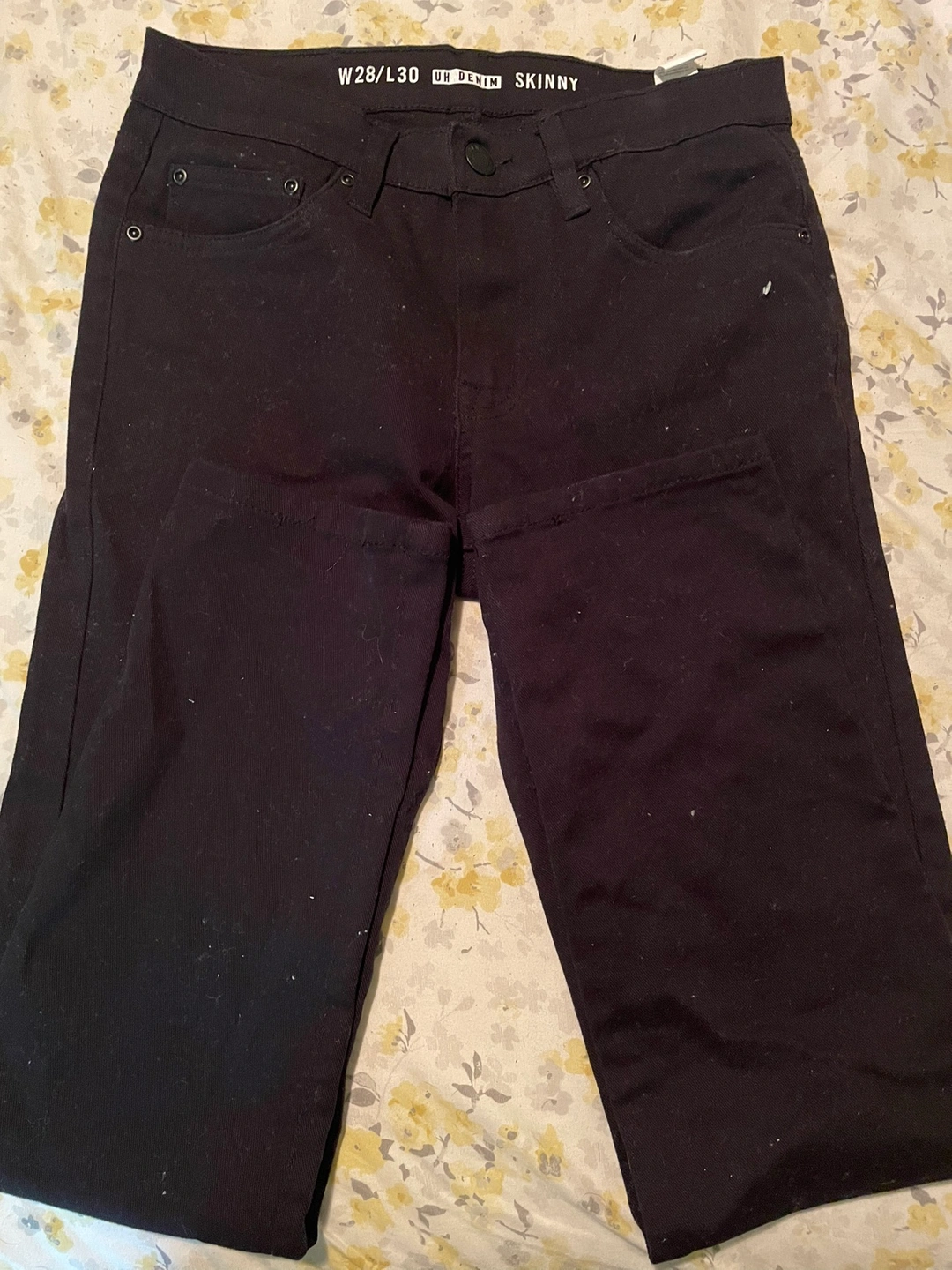 Black skinny jeans, size W28/L30 Lightly worn, no major damages, stains or discolouration!