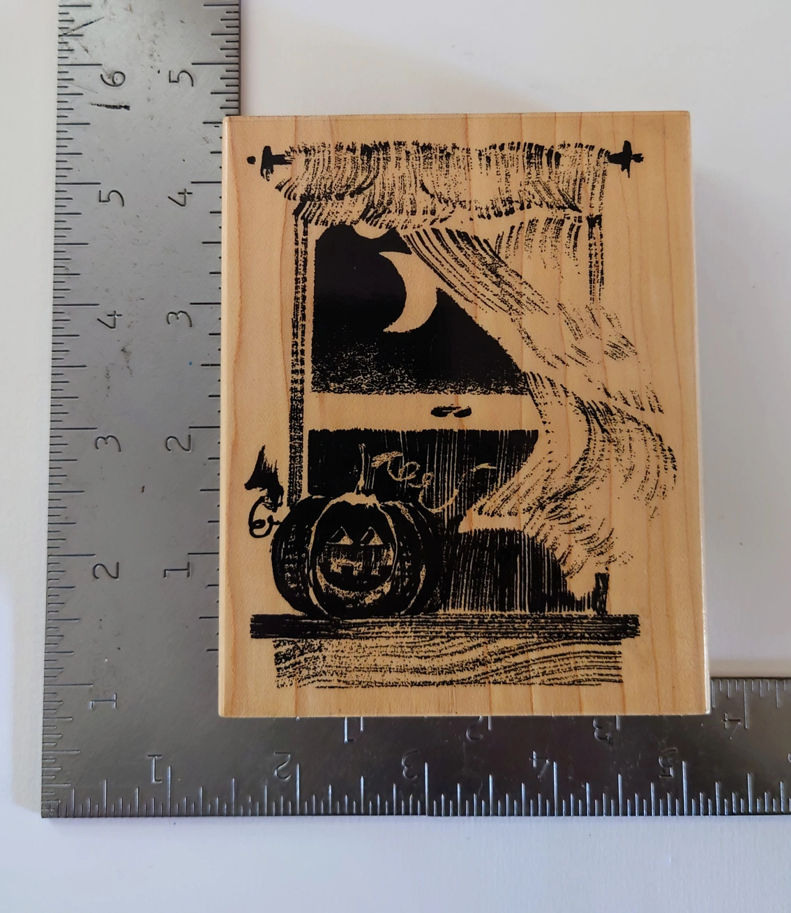 Penny Black Rubber Stamp - Halloween Window and Pumpkin