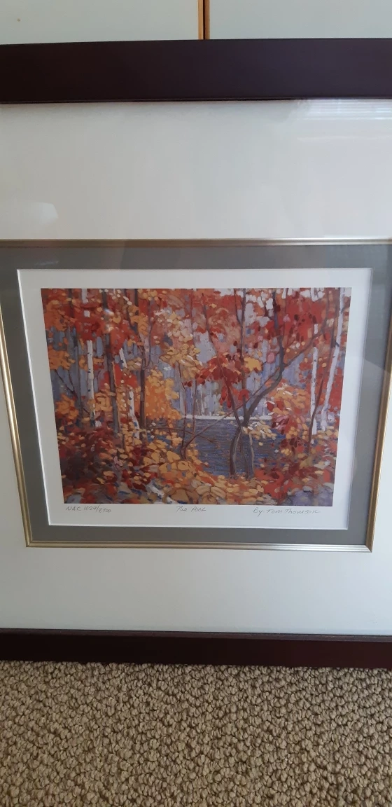 810Framed print of Tom Thomson painting titled "The Pool" Part of the "Images of Canada" Collection Beautifully matted and framed 18" square, including frame