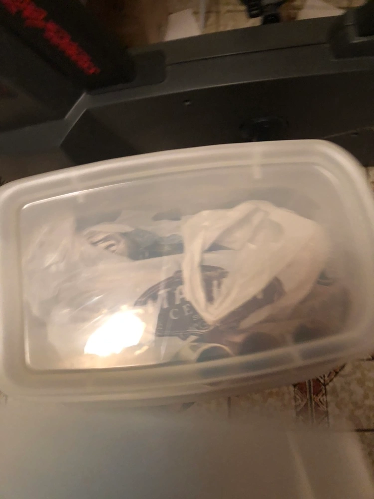 In really good condition except hinge on top compartment broken. The broken hinge doesn’t prevent top compartment usage.