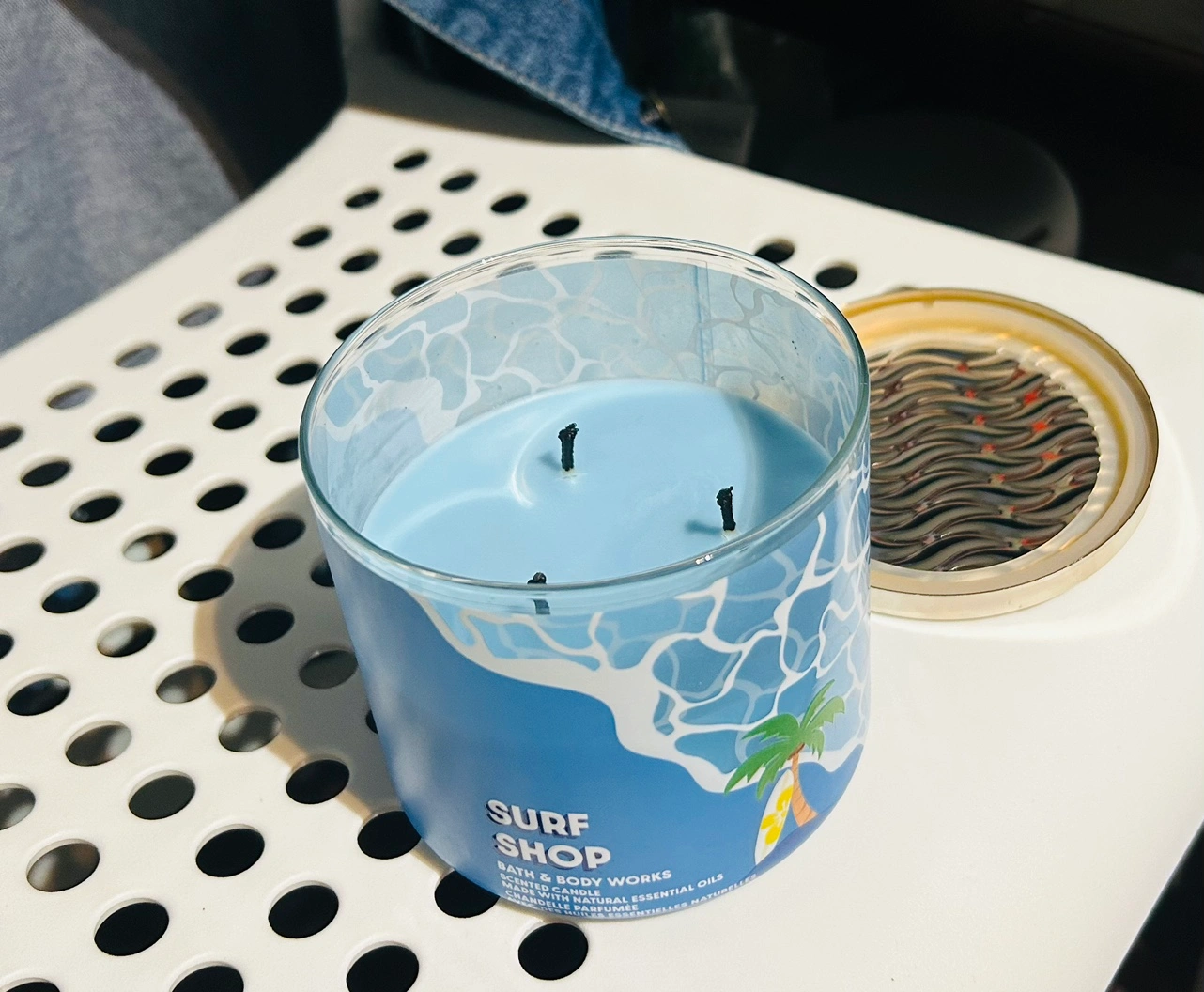 I just used a little. It’s still almost full. This is a Bath & Body Works candle with a summery scent and a cute design. The candle is in a glass jar with a metal lid and is approximately 8 ounces. The candle is brand new and has never been burned. It is a great way to add a touch of summer to your home. 3 wick candles is more expensive than 1 candles.