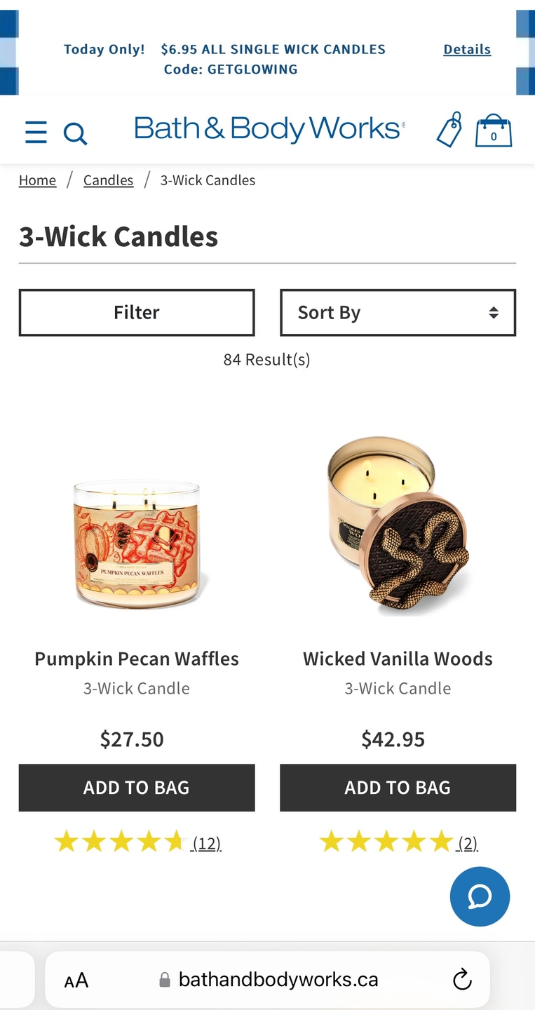 Bath&Body Works - 3 wick candles only 5$ (market price: 27.5$)