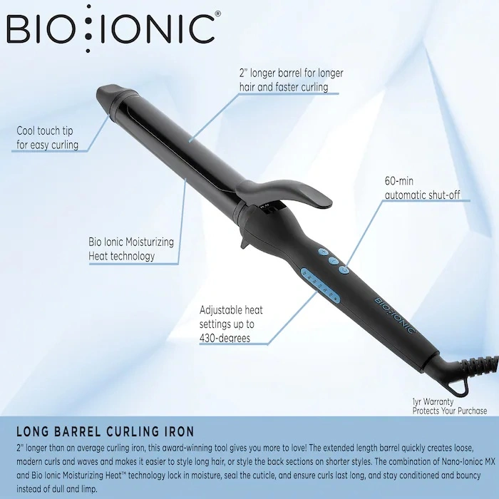 BIO IONIC Long Barrel Styler Pro Curling Iron, 1.25 Inch