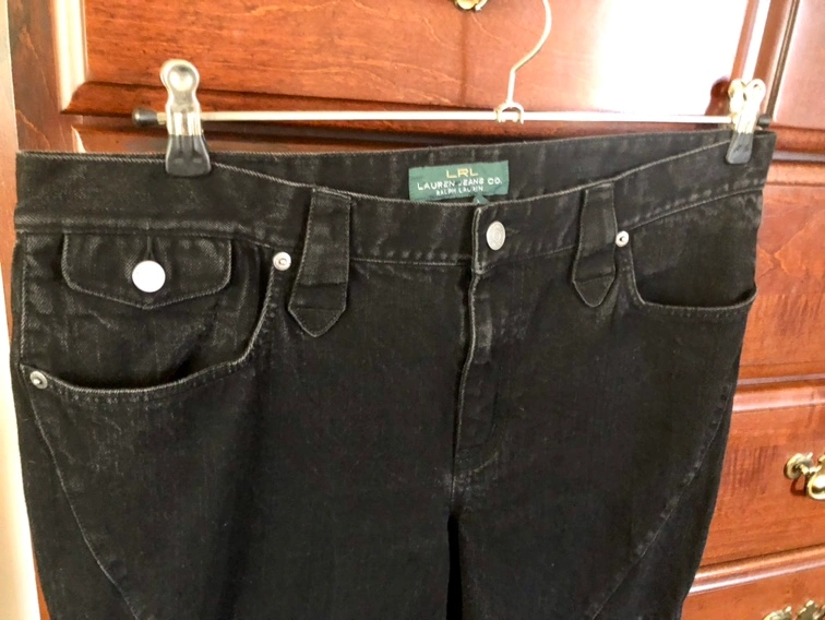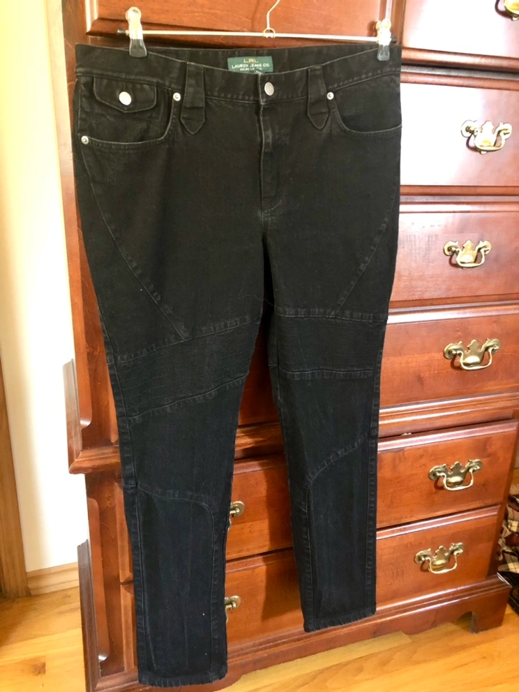 Ralph Lauren’s Lauren Jean Co Washed black, narrow leg, motorcycle style jeans, size 14.