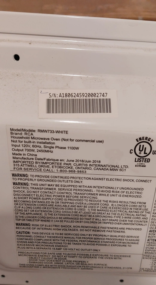 RCA is known for quality and affordability, and the RMW733-White microwave lives up to that reputation. With 700 watts of power, 10 settings, and six one-touch functions, it’s both powerful and easy to use. Perfect for dorms, home offices, or small kitchens, this compact microwave offers great features at an unbeatable price.White RCA Microwave. Comes with a rotating plate and a power cord. The microwave has a digital display and multiple settings.