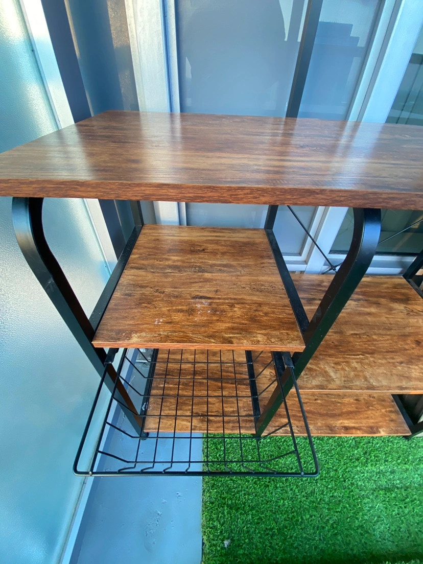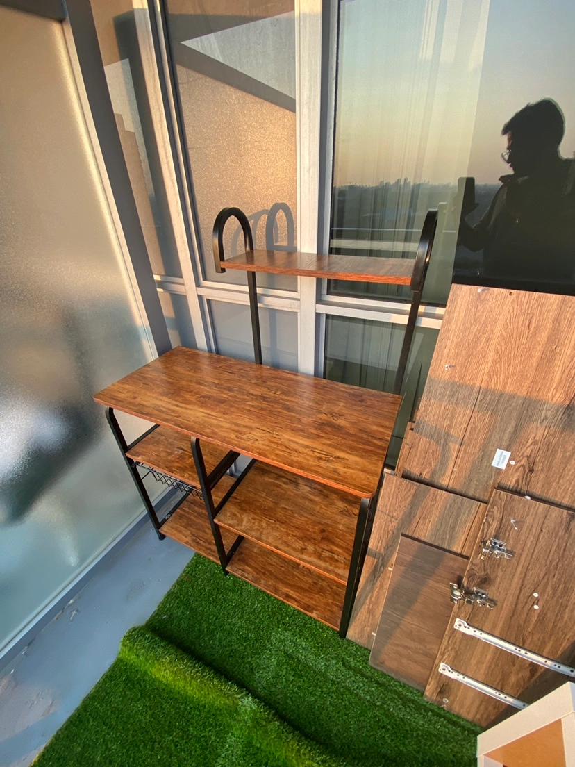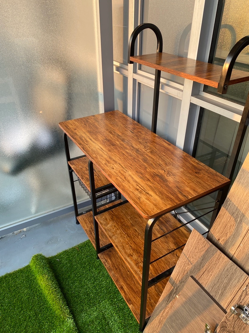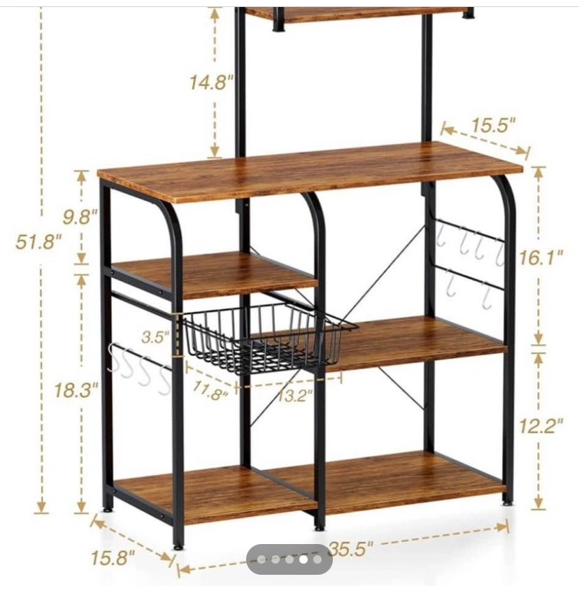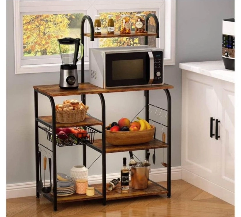 3-Tier+4-Tier Kitchen Shelf & Ample Storage: size (35.5"L*15.75" W*52"H), the kitchen utility shelf has massive space. The sturdy top panel can hold a microwave oven and other kitchen appliances. The 3-Tier+4-Tier shelf can store toaster, spice, plate,dishes, and any other things you want. Buying little hooks make it convenient to hang some cooking