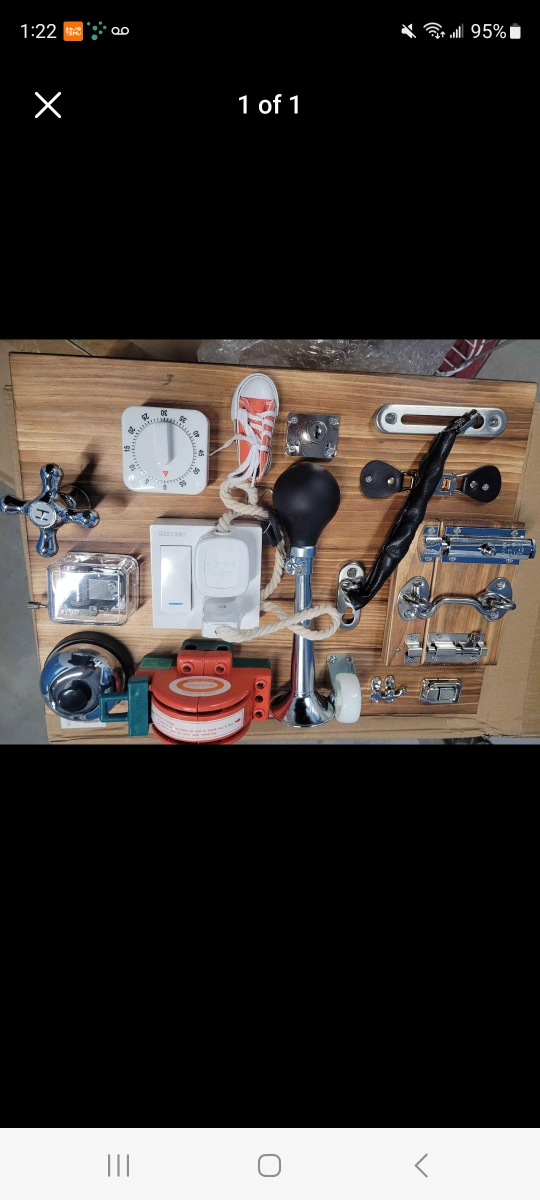 Quality and Safety: This fidget busy board is made of high quality wood material, lightweight, with a Integrated handle design. The edges of the activity board and elements are smooth and sturdy enough for patients to play safely.