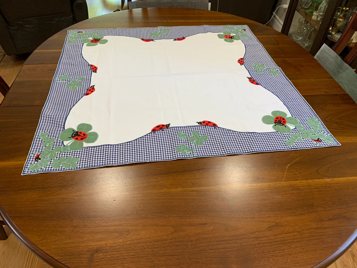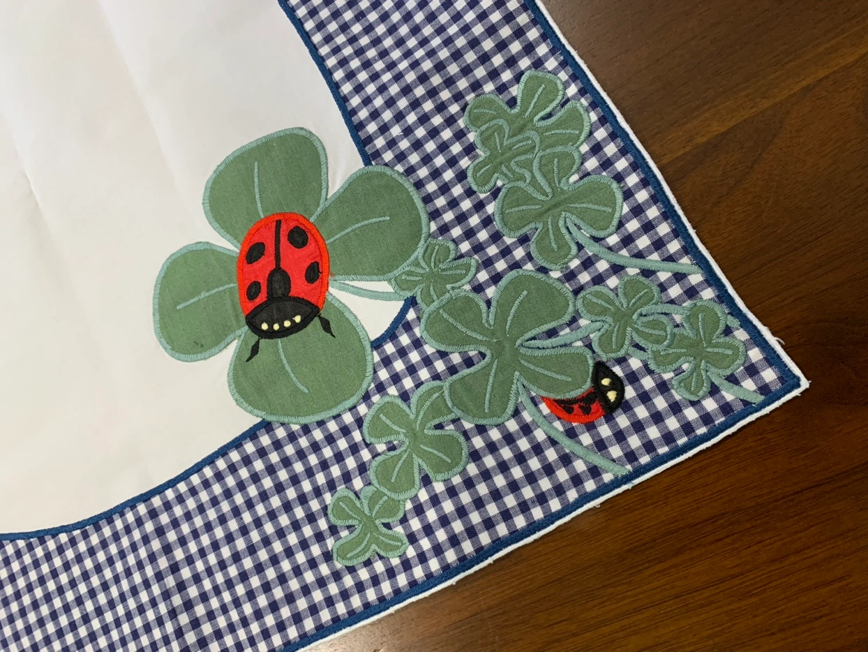 Appliquéd Ladybug Tablecloth with Shamrocks