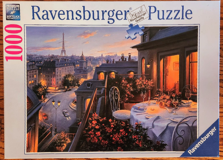 A 1000 piece Ravensburger puzzle featuring a view of Paris from a rooftop balcony. Excellent condition Porch pick up Scarborough morningside and 401. Please see my profile for more items