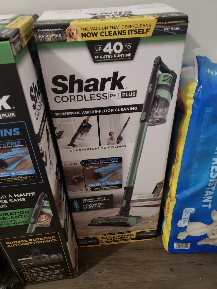 Shark Cordless Pet Plus vacuum. Powerful above-floor cleaning. Includes self-cleaning brush roll and extra large dust bin. Great for pet hair!