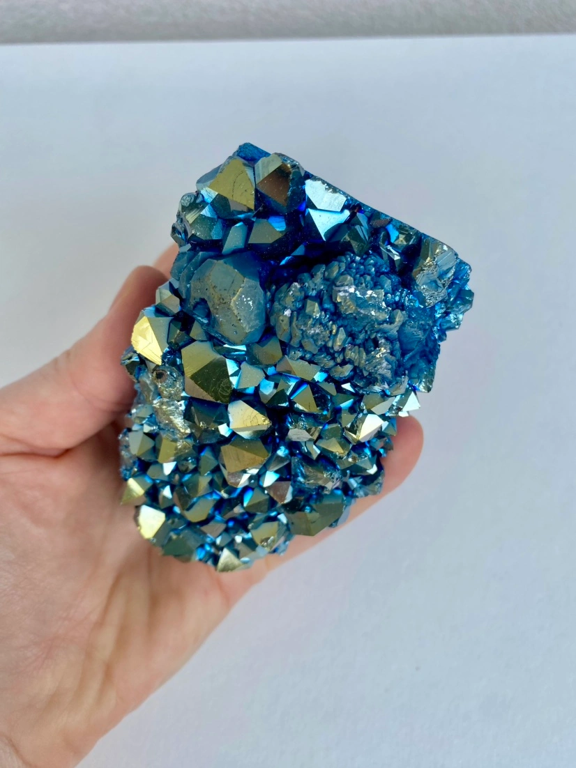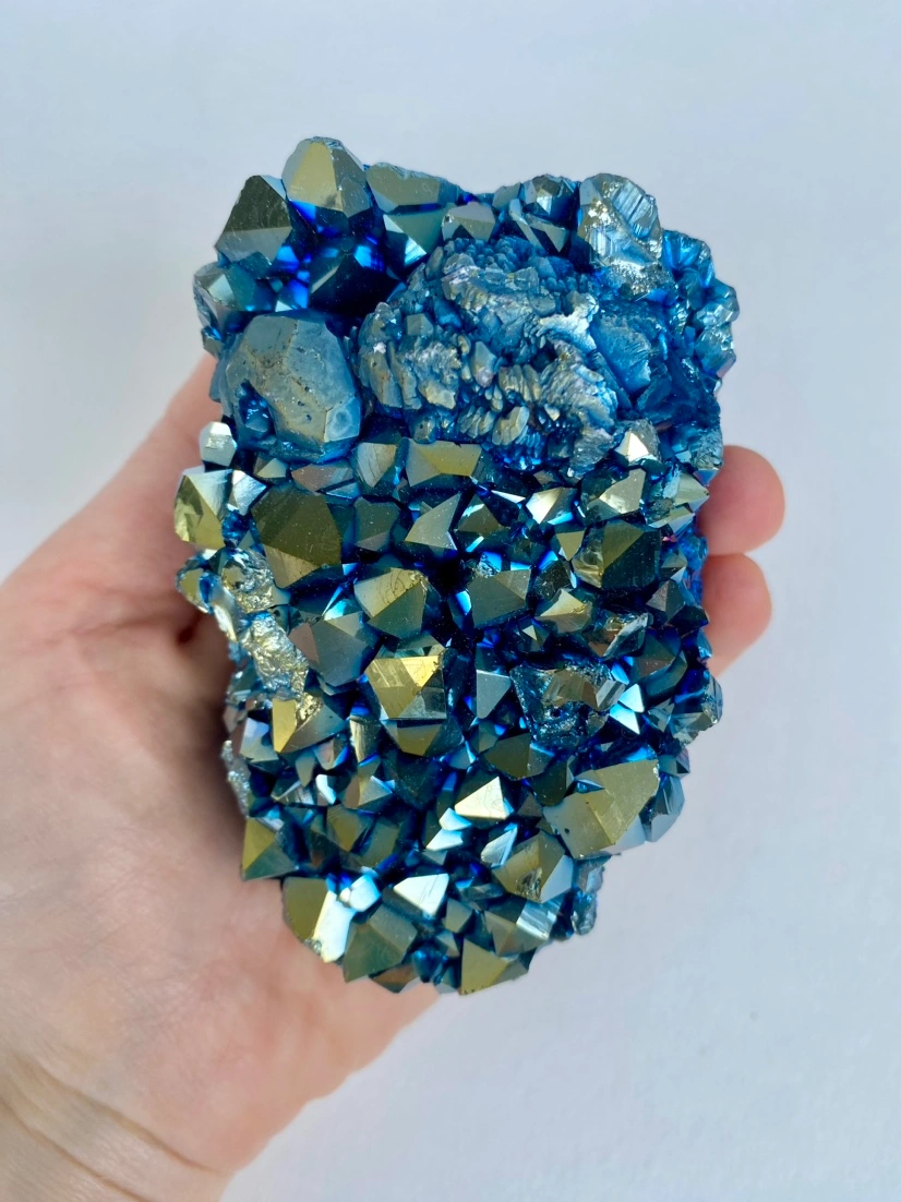 Aura quartz are natural crystals that have been treated with different precious metals such as gold, silver, titanium and platinum. When crystals are fused with metals, their energy and beauty is amplified. This results in a new type of crystal that still resonates within its original frequency but has now new properties of its own. Its energy is so greatly increased by the melted metals that even individuals who are not receptive to energy will be drawn to the aura quartz, making it the perfect crystal for those who are new to spirituality. Moreover, their beautiful colors and high vibrations help Aura Quartz facilitate your connection with the spiritual realm. Thus, these crystals are advised for people who are just beginning their spiritual journeys, or who are not yet sensitive to the subtle energies around them. Another benefit of Aura Quartz is that it awakens intuition and helps you to connect with your inner self. An Amethyst Aura Quartz (L) crystal can also bring harmony to intimate relationships and friendships while cleansing past Karma. Be sure to program these beautiful crystals with your deepest dreams and desires to materialize them.