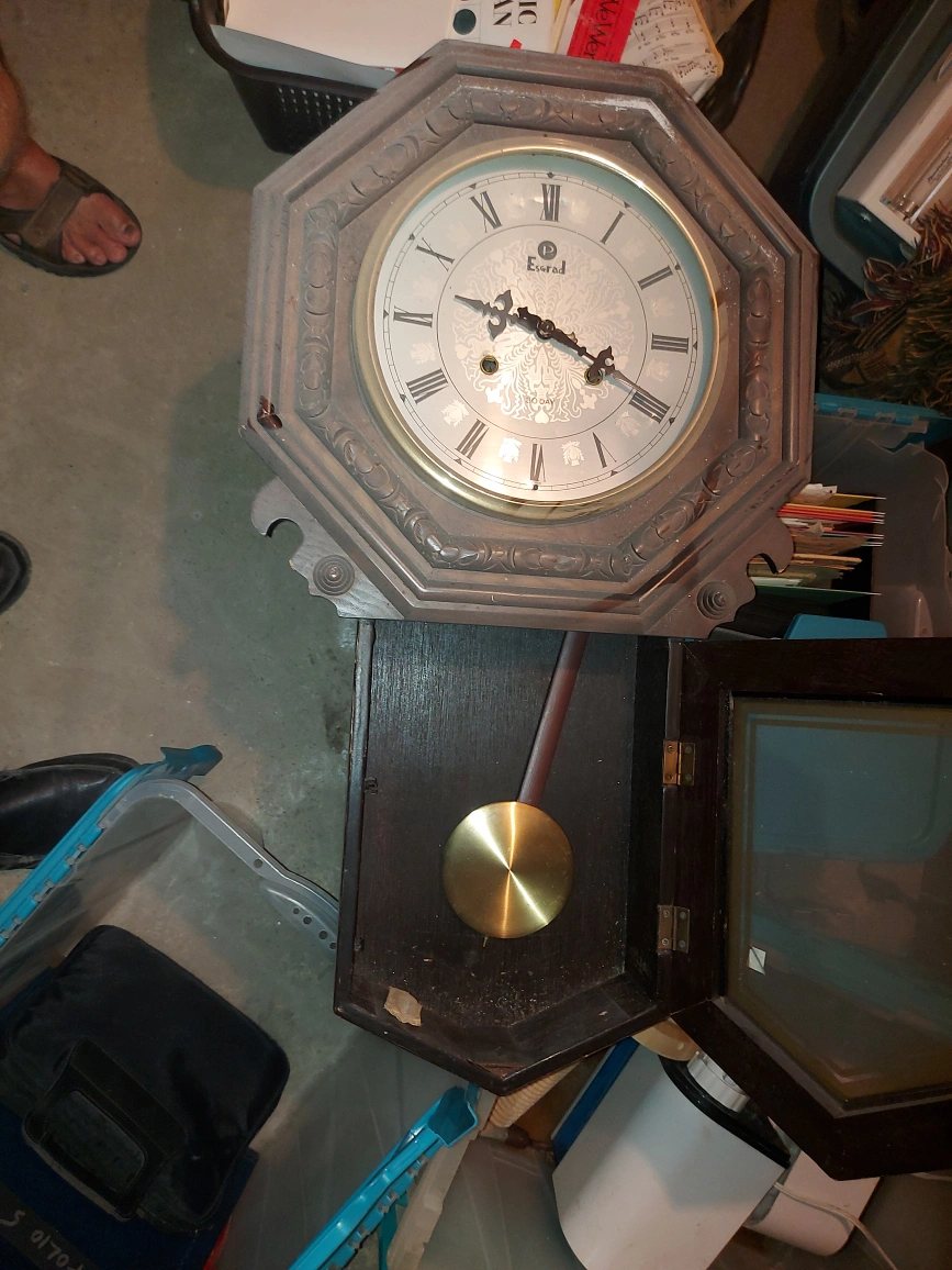 This is a vintage wall clock. It is a beautiful clock, but it is not in working order. This would make a great fixer-upper for someone looking for a project.