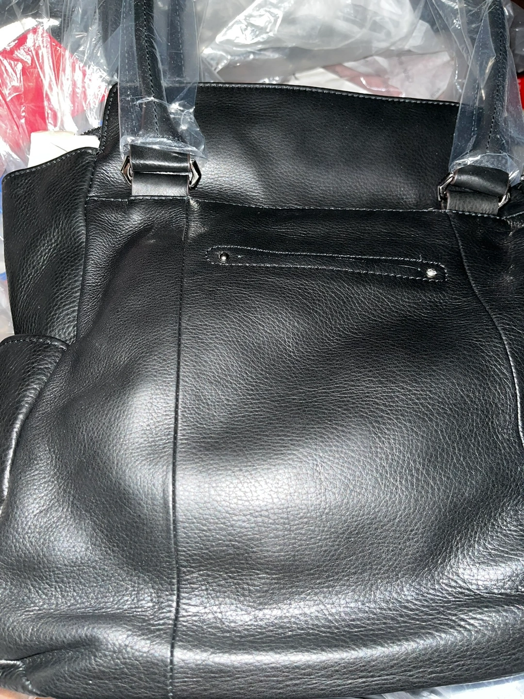 Black leather handbag
