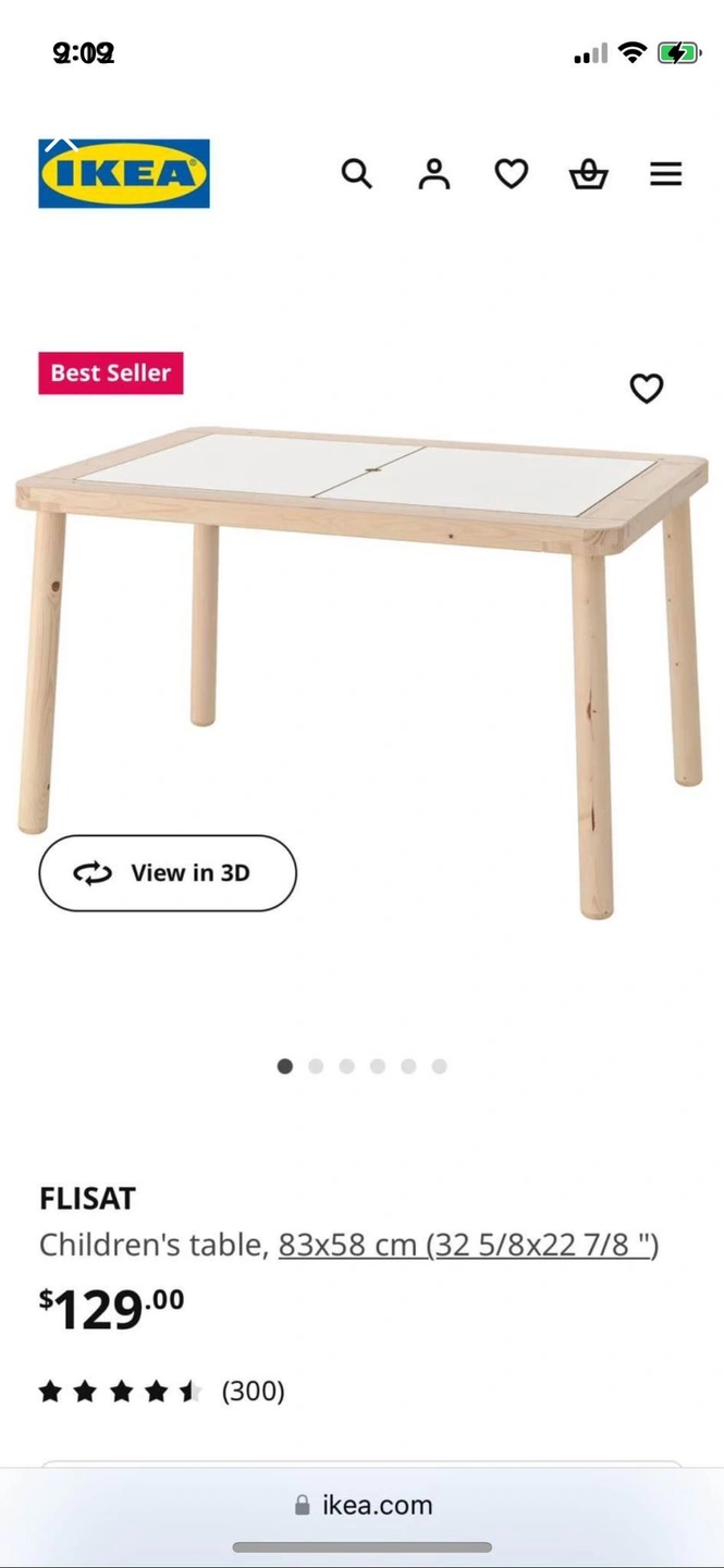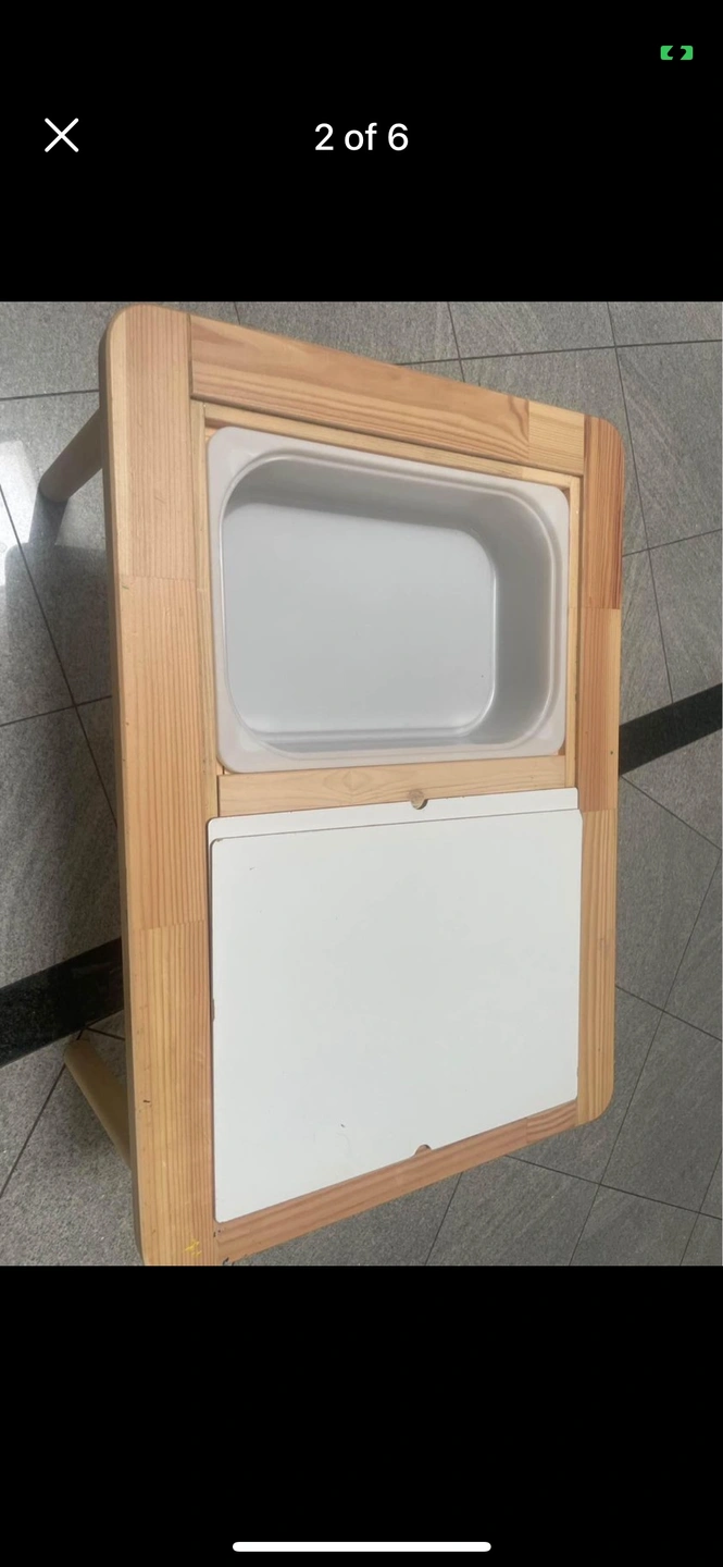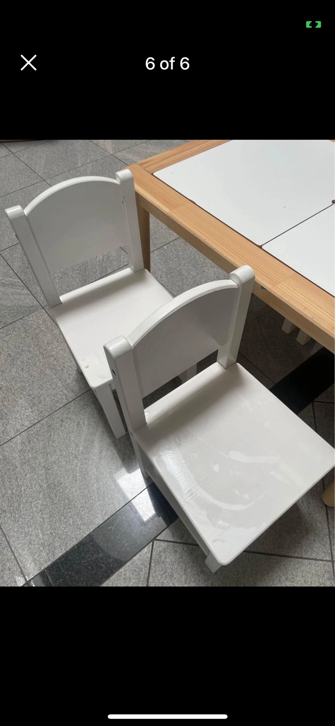 This table comes with four chairs and has a built-in storage bin. Only including one bin, another can be purchased from ikea for $5.00. The top surface can be used for crafts or writing. It is perfect for small children.