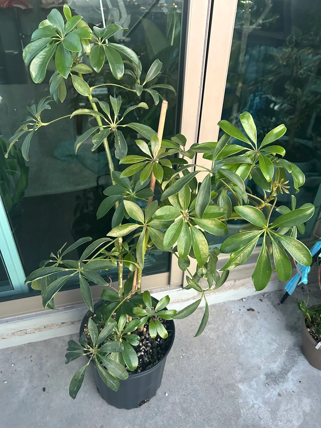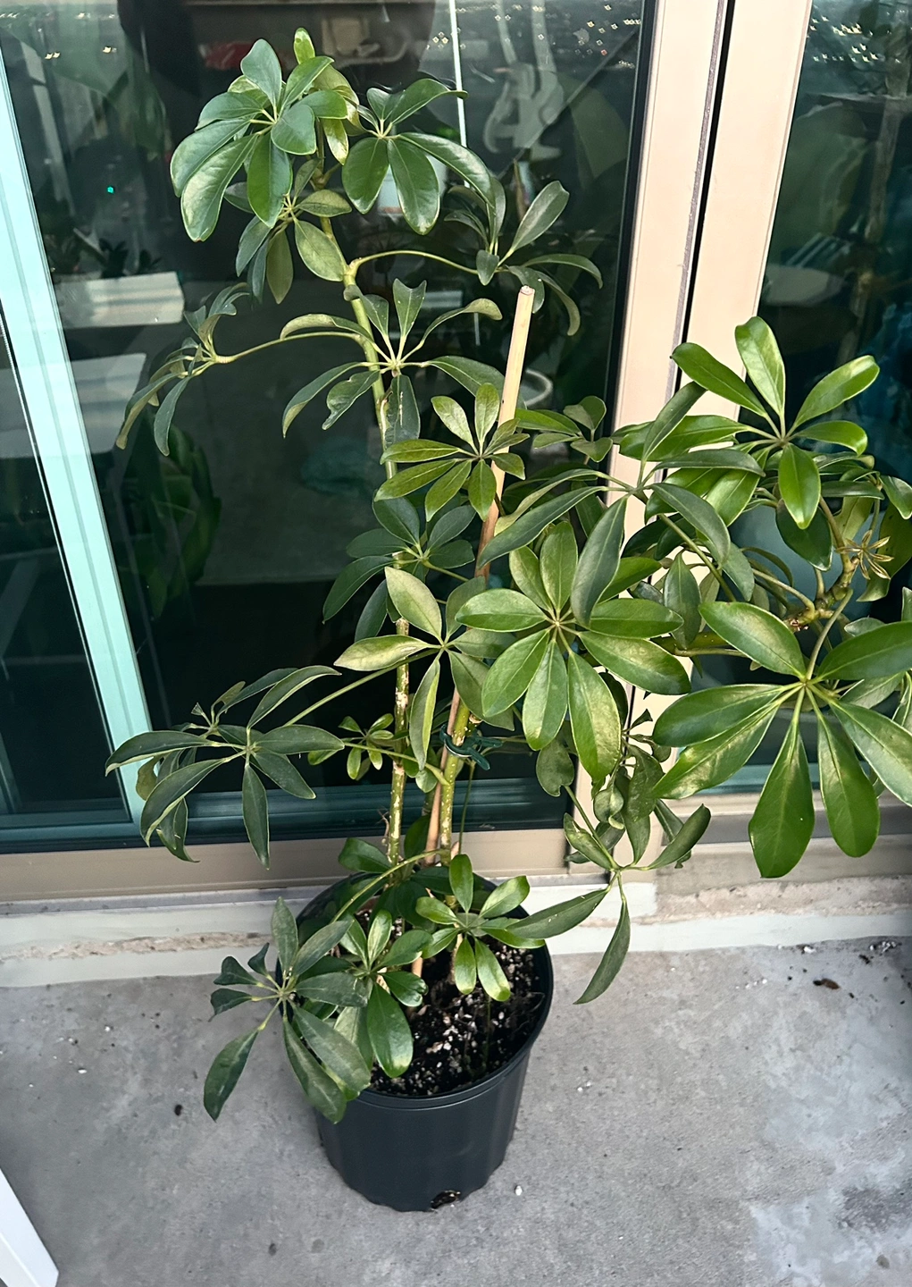 This plant is approximately 3 feet tall. It is in a 10 inch pot. There are 2-3 stalks on the plant. It has been grown outdoors on a balcony and has been well maintained.