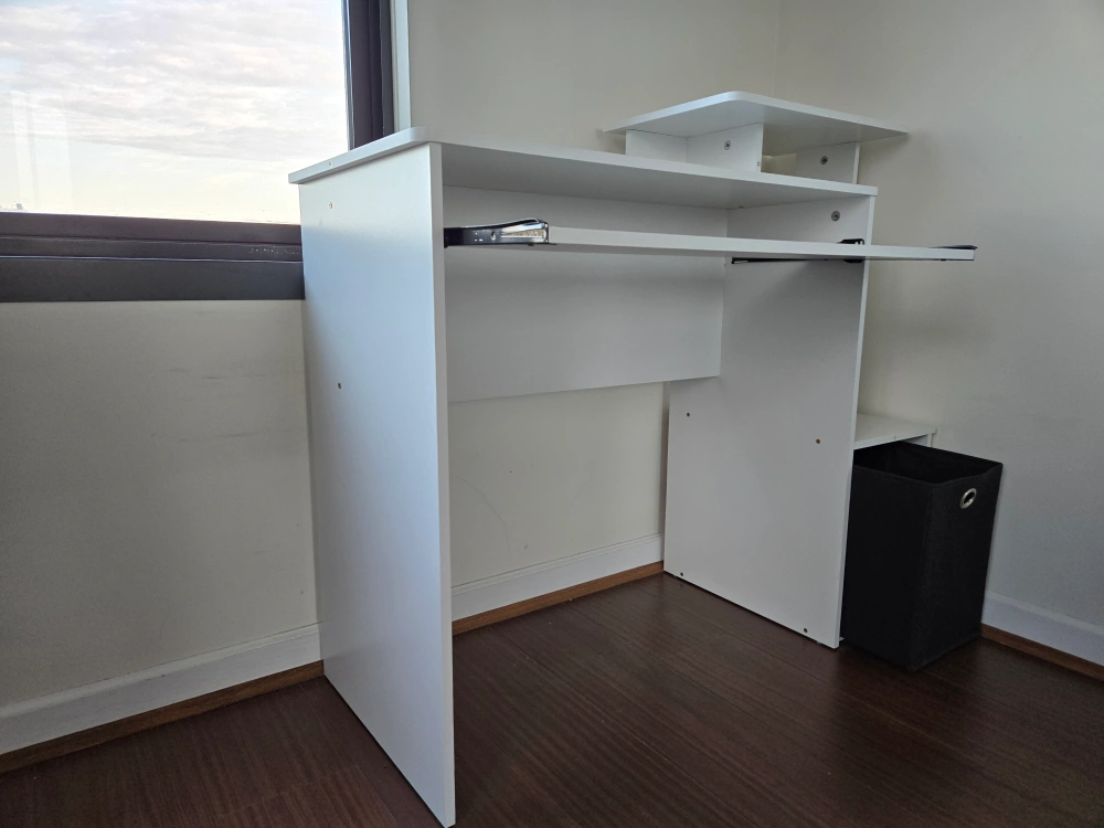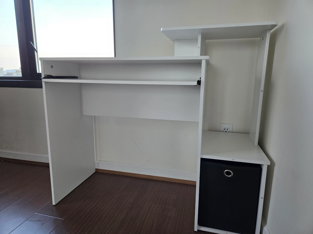 Home office essentials: Comes with keyboard tray and non-woven bin for storage