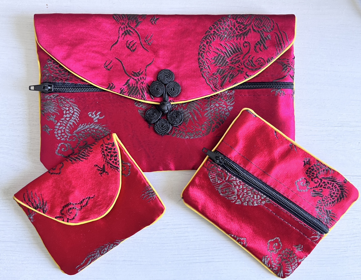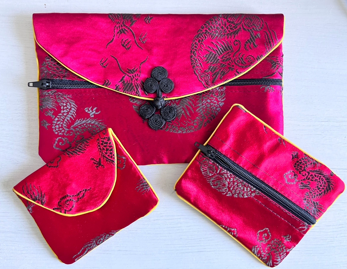 A 3-piece of brand new set red wallet with yellow trim and black zipper closures for only $2!