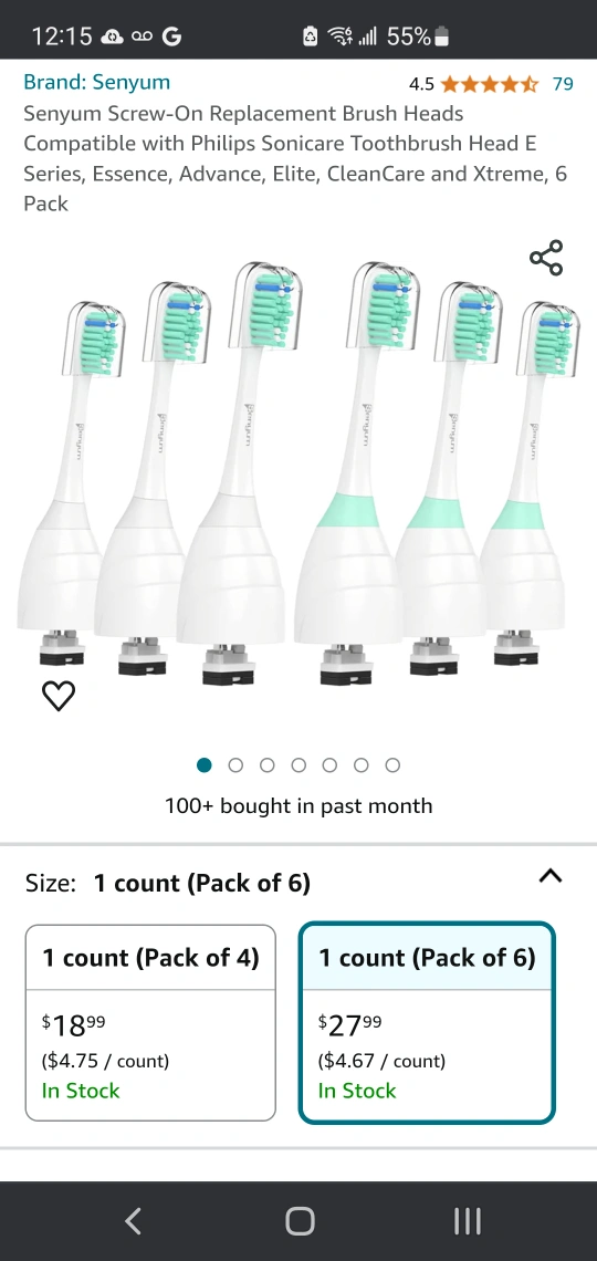 Philips Sonicare e series electric toothbrush, $8 each/both $15