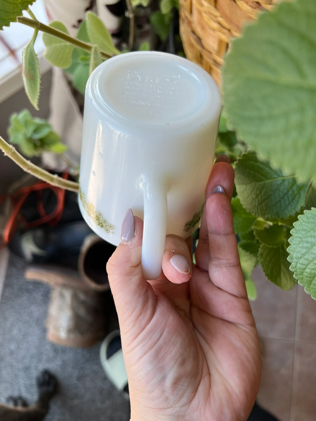 Set of 8 Vintage 70s Pyrex "Spring Blossom" Coffee Tea Cups Crazy Daisy Green Flower Pattern.
