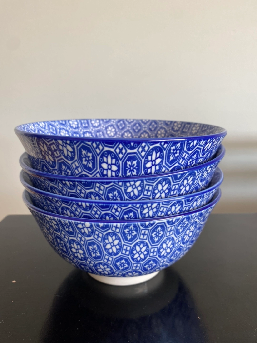 Porcelain bowls that are in new condition sold as a set. Beautiful Royal Elfreda brand.