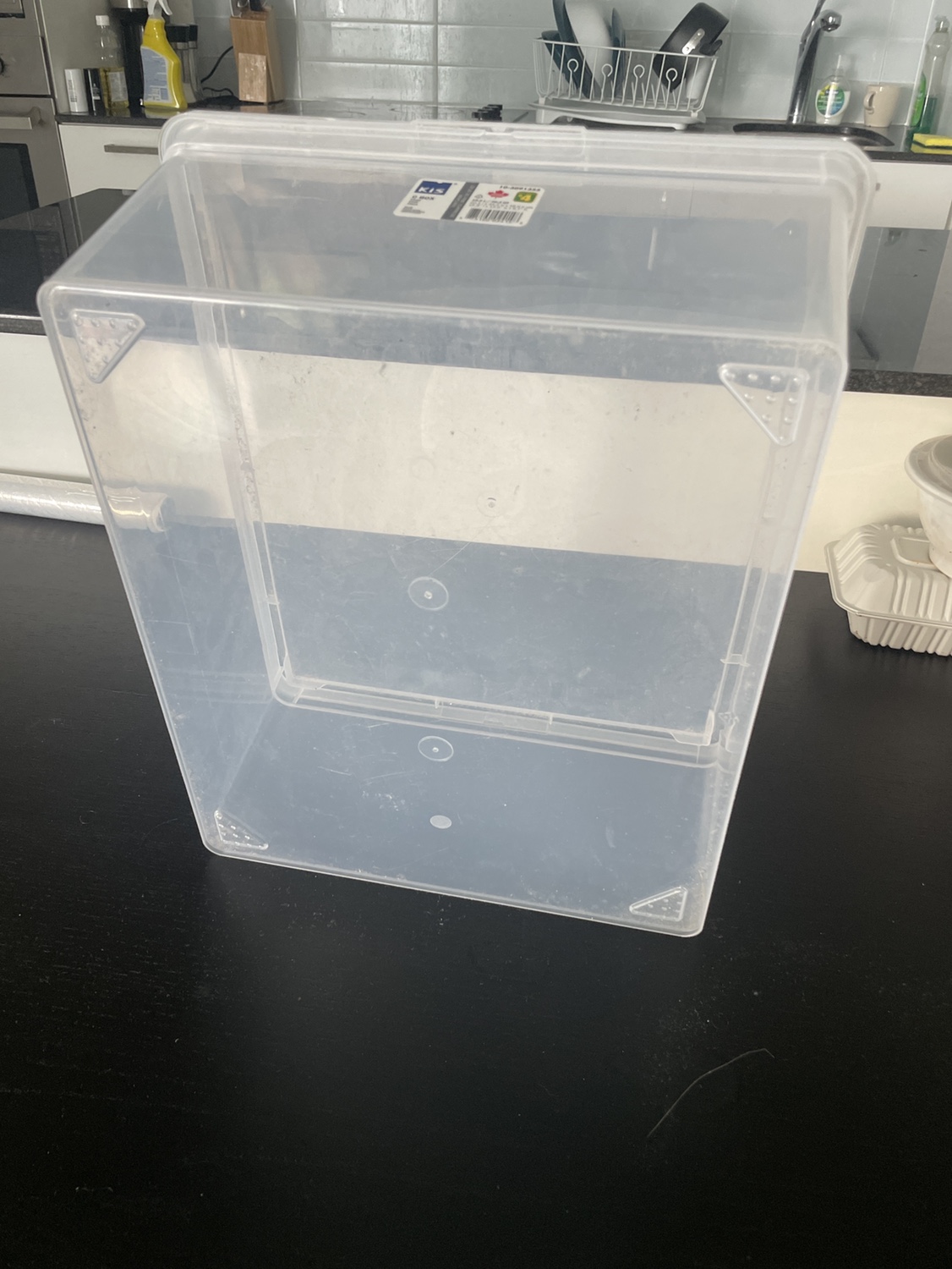 Buy & SellClear Plastic Storage Bin with LidClear Plastic Storage Bin with LidFreeLarge clear plastic storage bin with a lid. Perfect for organizing your home! -pick up only at 14 York -cash onlyConditionLike new4 chats·0 favorites·60 viewsSELLERAnnFinancial District17518 reviewsWHERE TO MEET14 York St