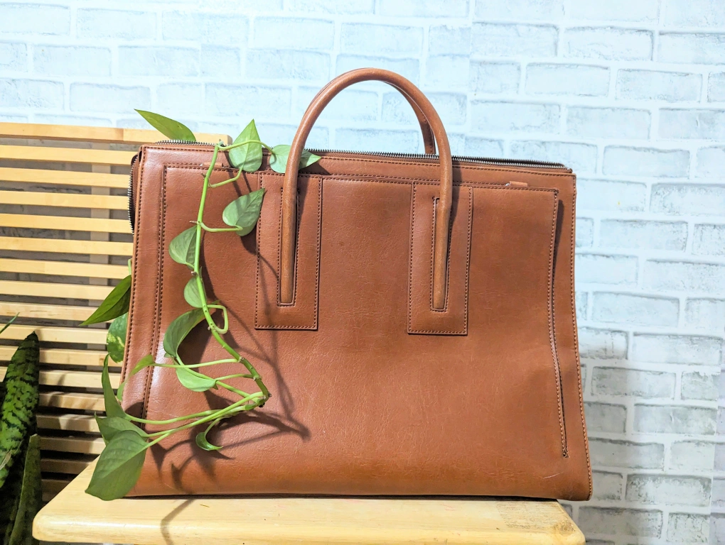 Loads more items posted. Have a lookLarge brown vegan leather messenger bag with top zipper closure.