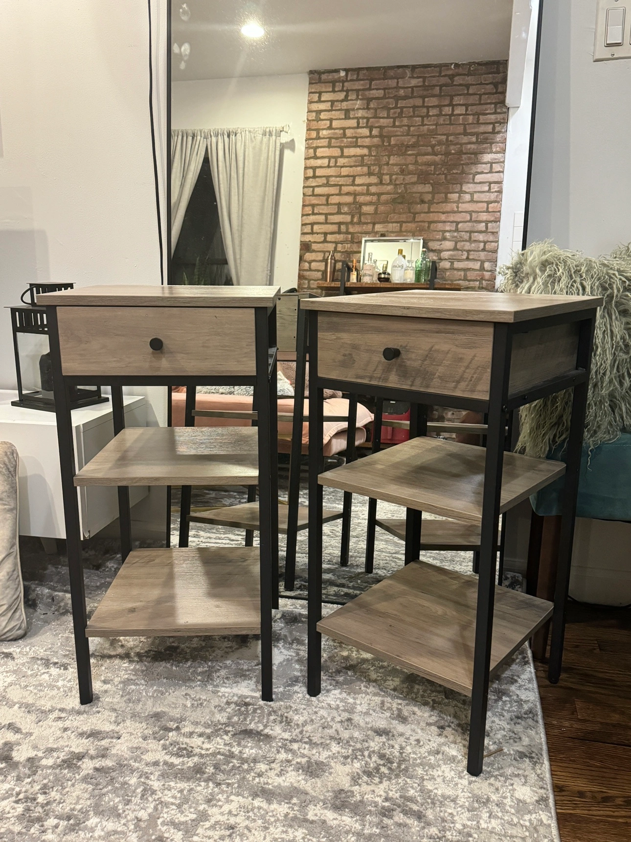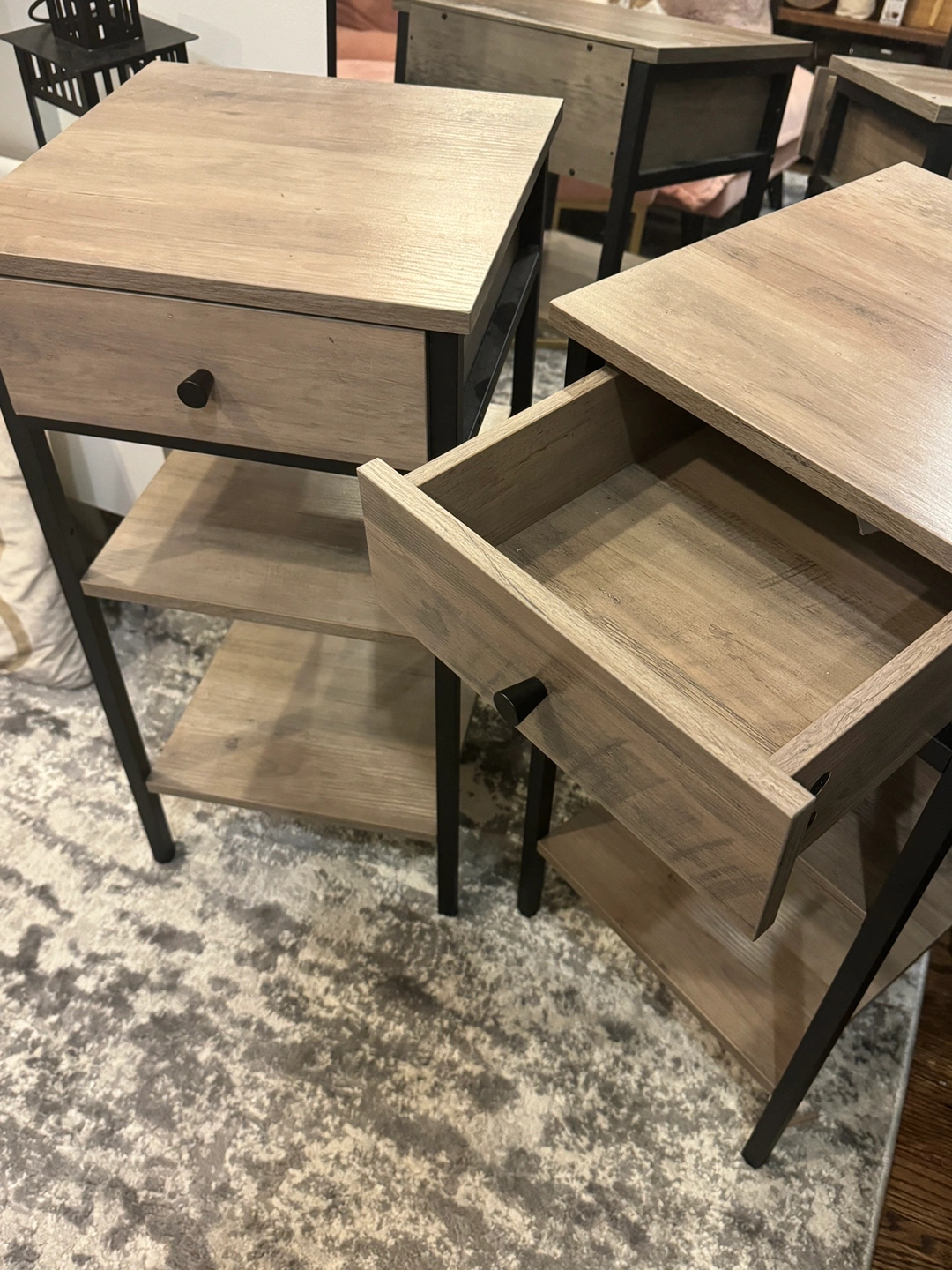 Almost new nightstands (set of 2) with drawer and 2 storage shelves for sale. Pristine condition. Need to sell as they don’t fit in the bedroom with my new king bed. Gorgeous set!