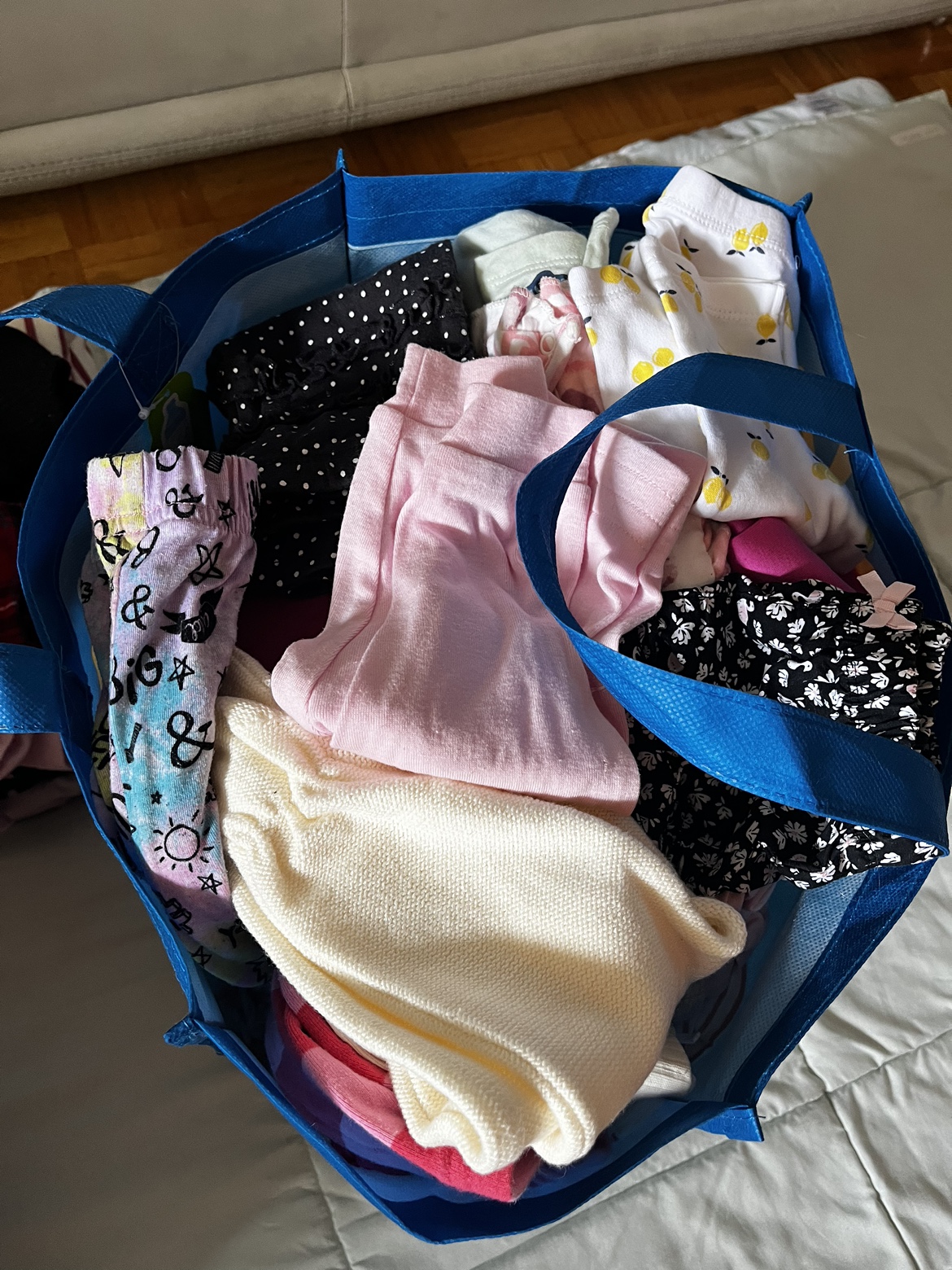 A bundle of baby clothes in various sizes and colours. some are brand new, some are worn but no stains at all there is three months to one year